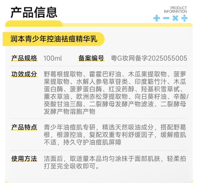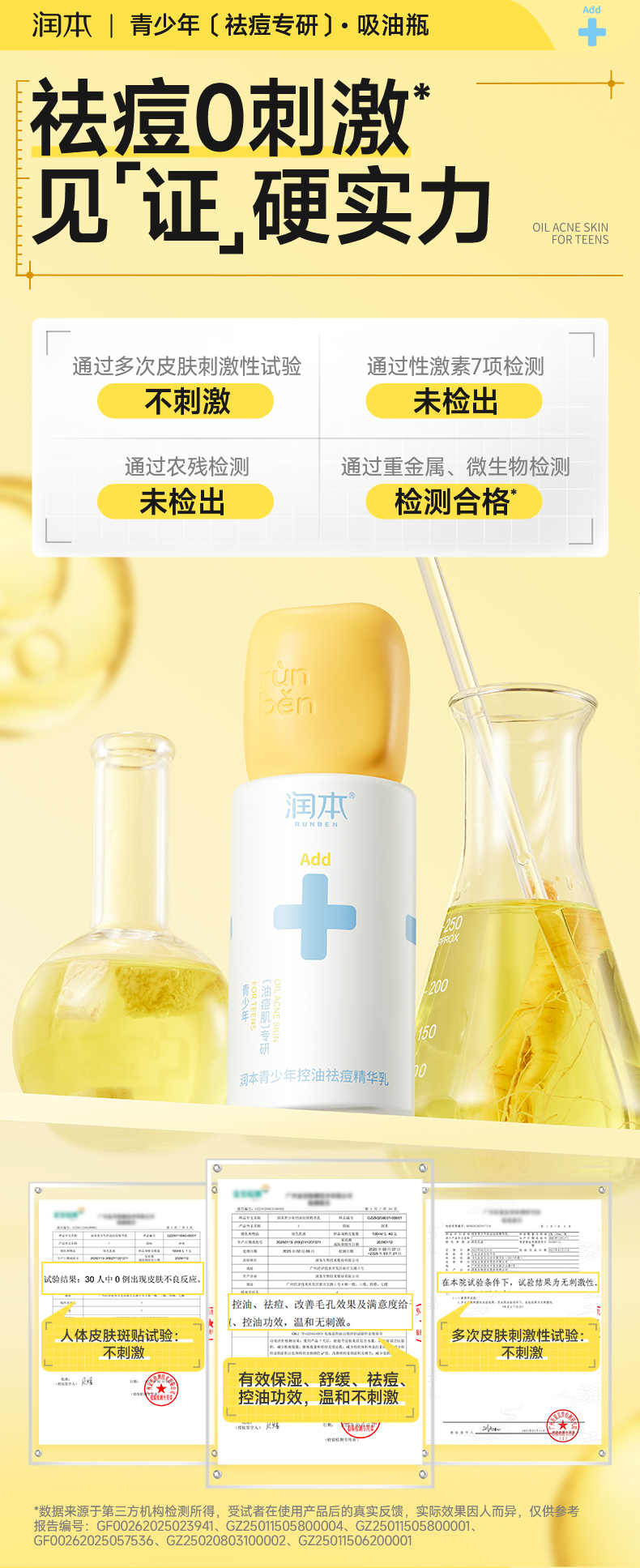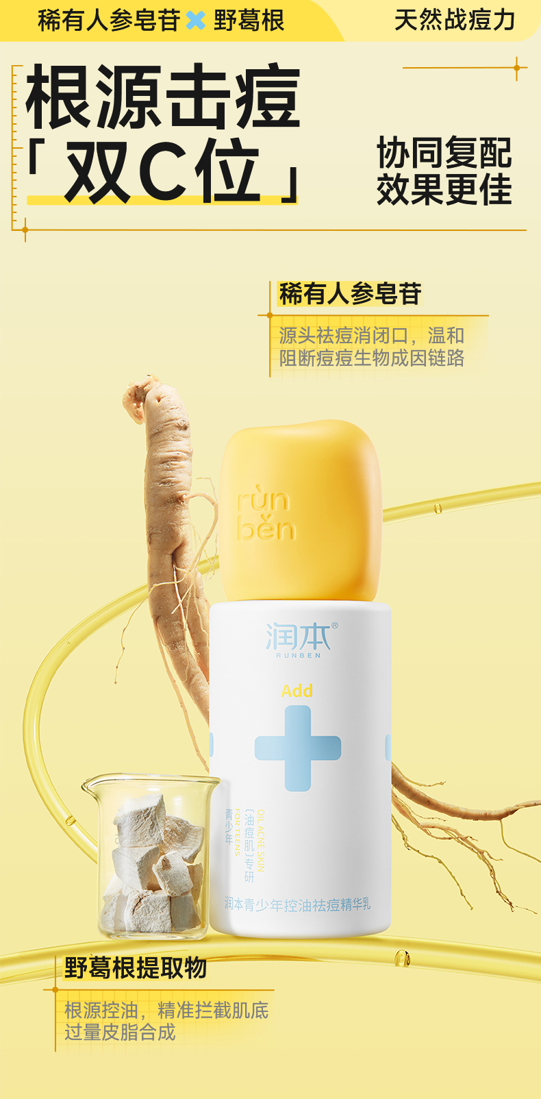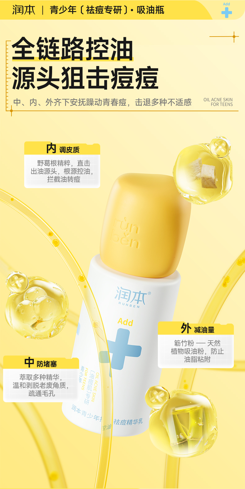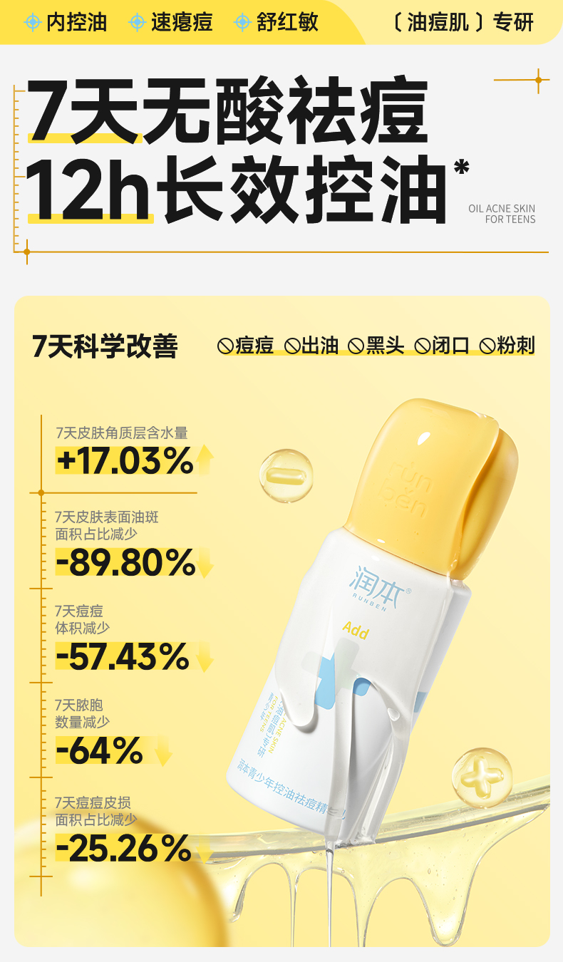 润本青少年控油祛痘精华水 褪红去闭口水粉刺快速舒缓痘印改善痘肌