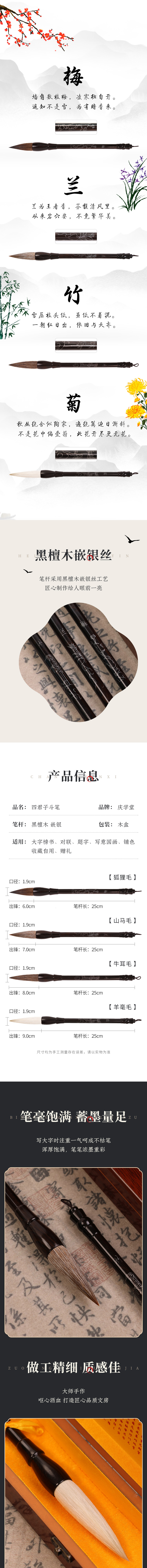 【庆学堂】臻品-非遗黑檀木嵌银四君子斗笔 大字榜书/对联笔/题字写意国画/铺色 梅兰菊竹 收藏送礼
