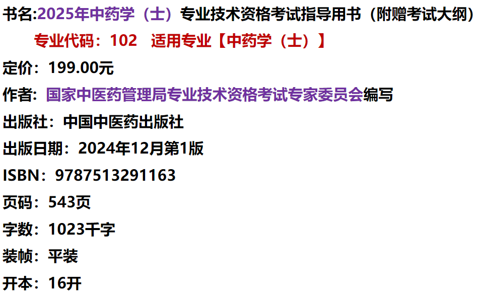 2025年中药学(士)专业技术资格考试指导用书 专业代码102 国家中医药管理局专业技术资格考试专家委员会 中医药出版社初级士考试