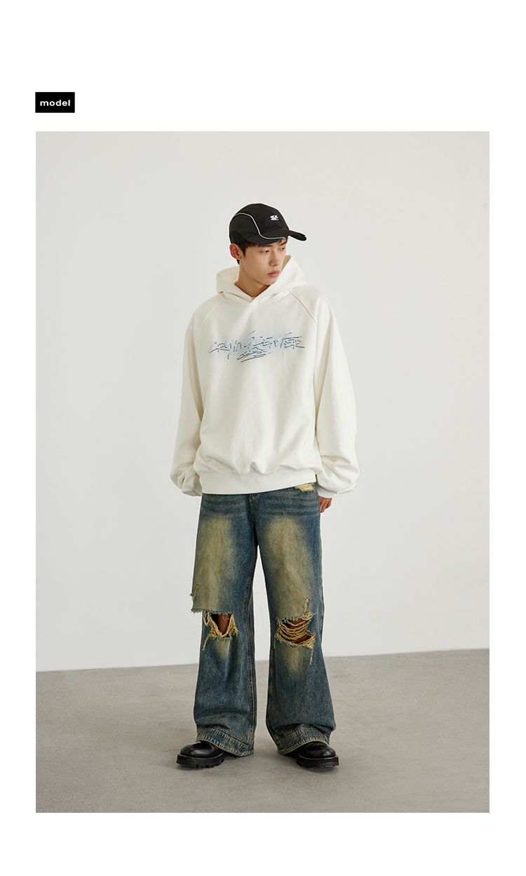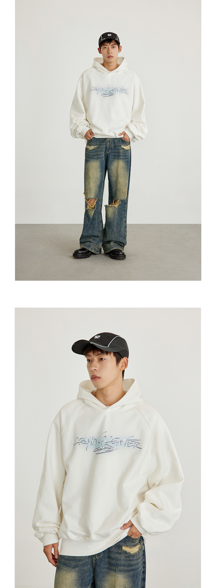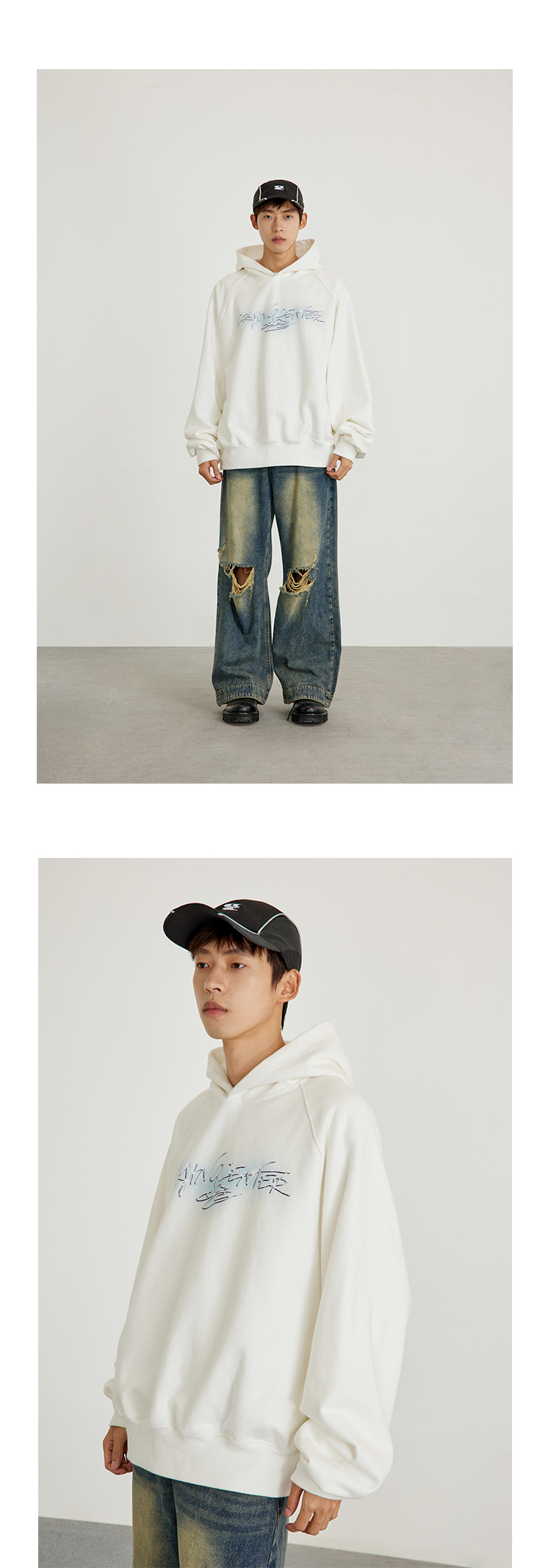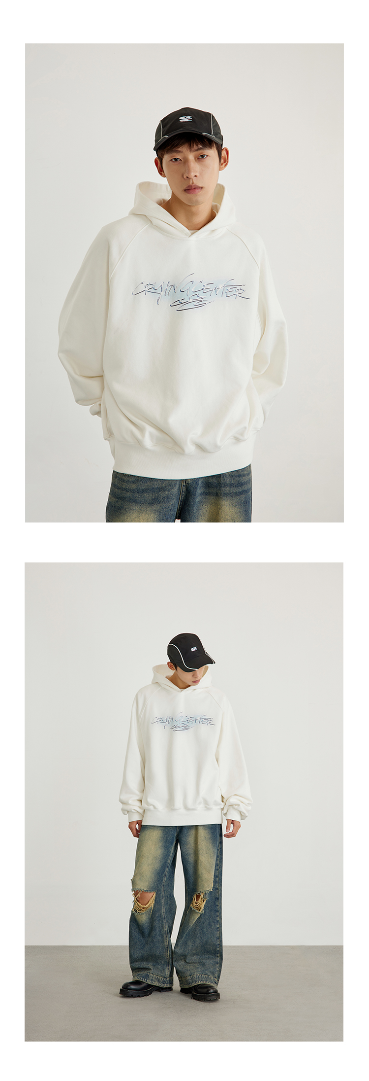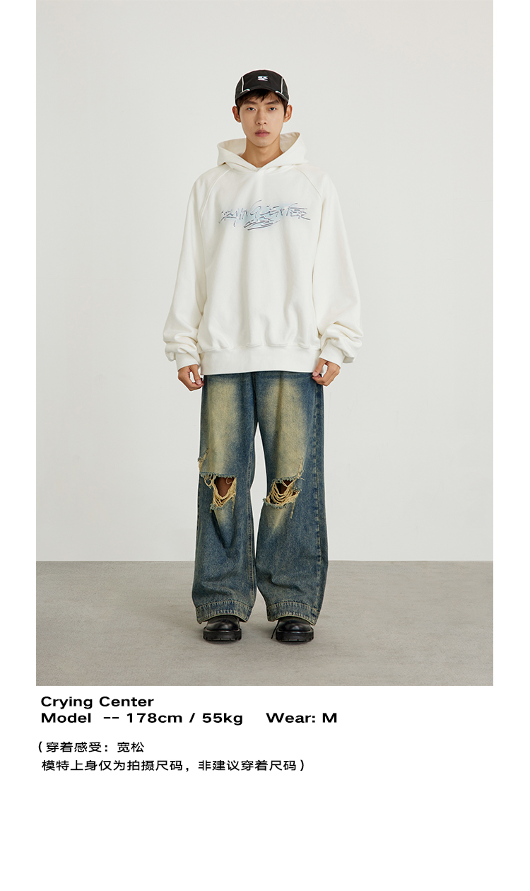 CryingCenter 液态金属手写字连帽休闲加绒卫衣 哭喊中心