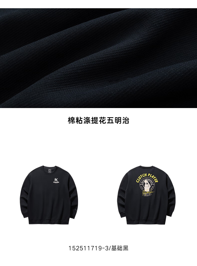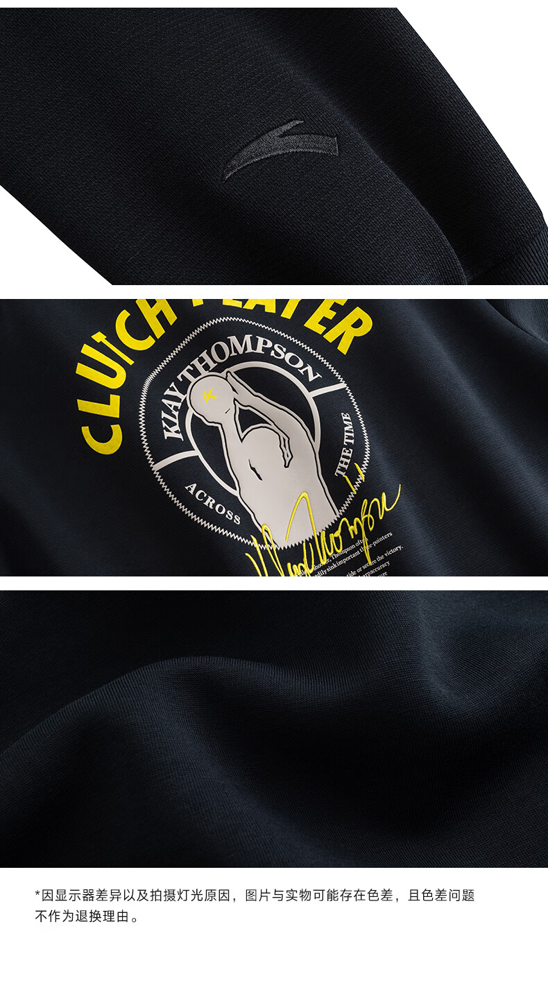 安踏(ANTA)KT男套头卫衣24年冬新款潮流满印篮球校园风长袖套头衫152511719
