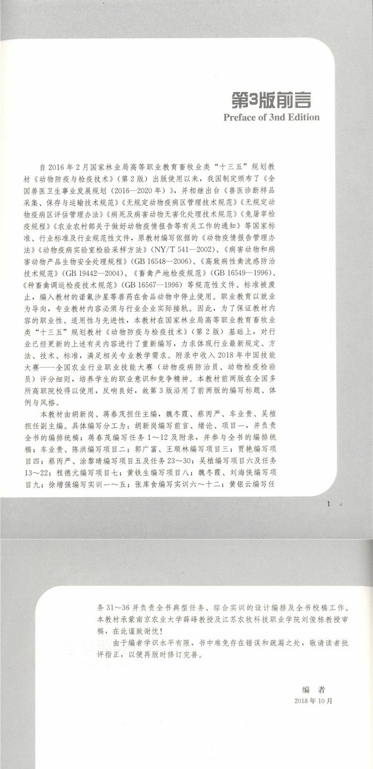 动物防疫与检疫技术 第3版 胡新岗 9452 林业和草原局高等职业教育畜牧业类十三五规划教材 中国林业出版社 正版畅销书