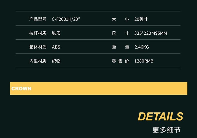 CROWN皇冠 拉杆箱 时尚登机箱万向轮密码箱男女 C-F2001H/20" 20英寸