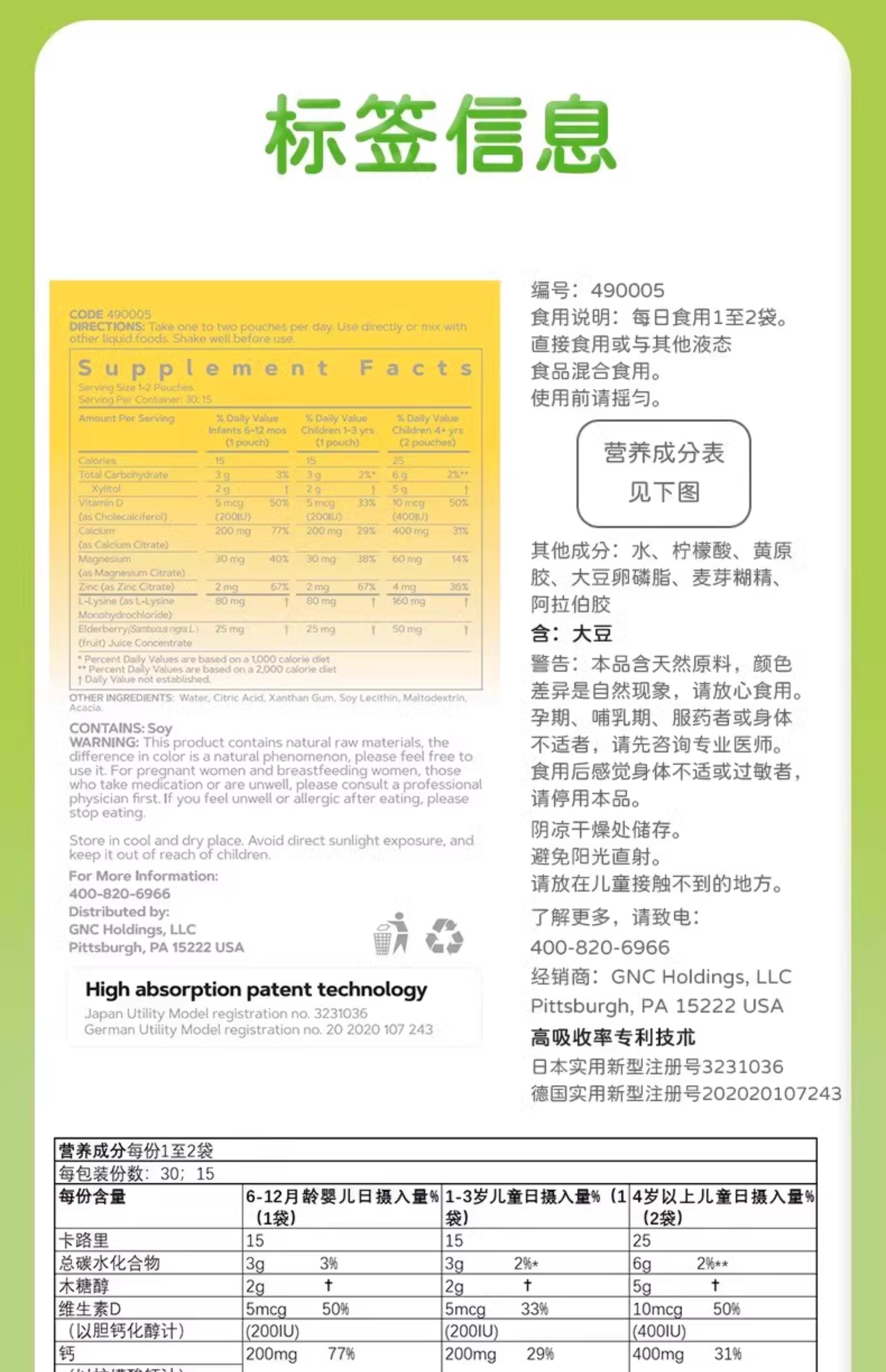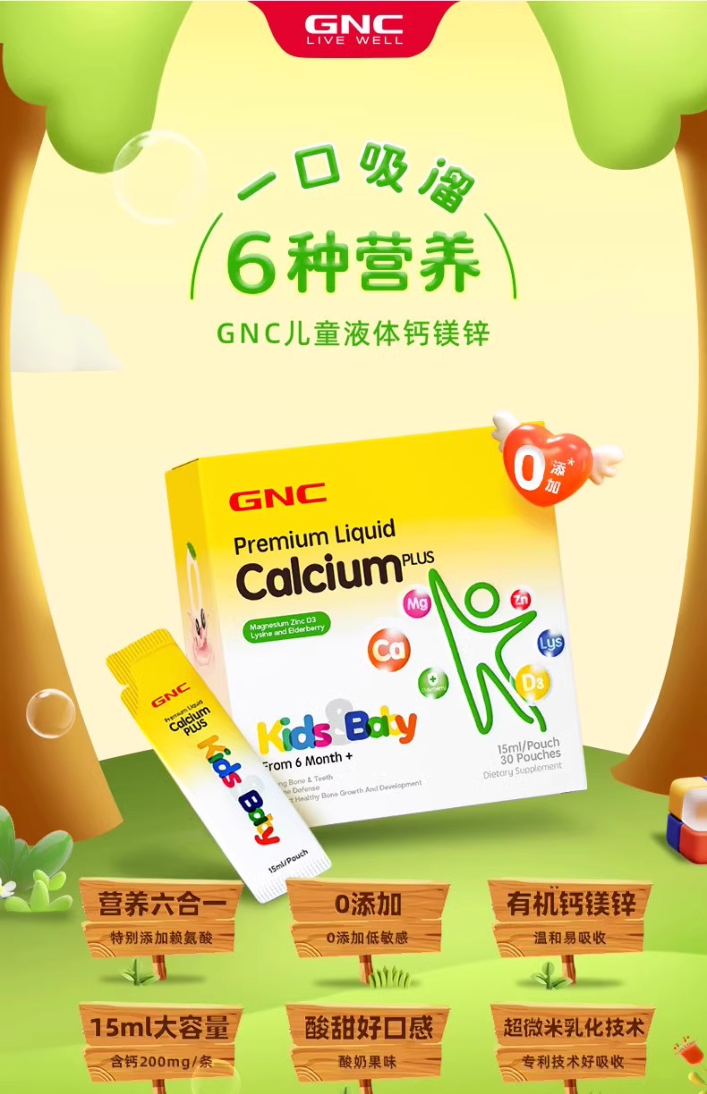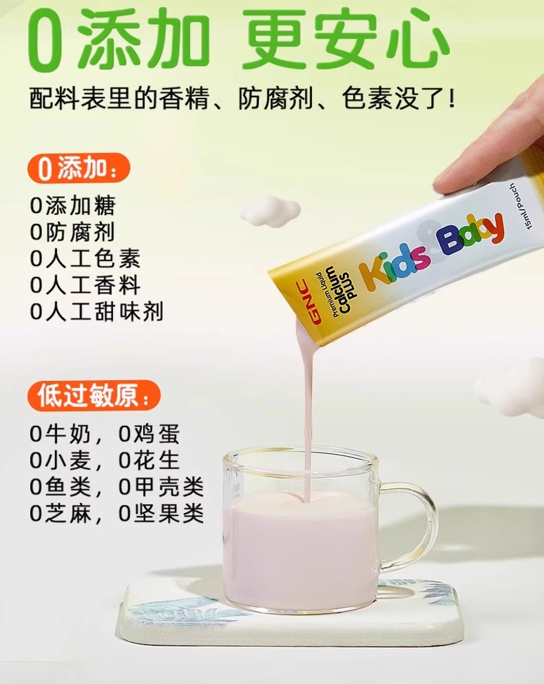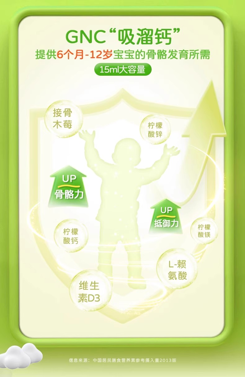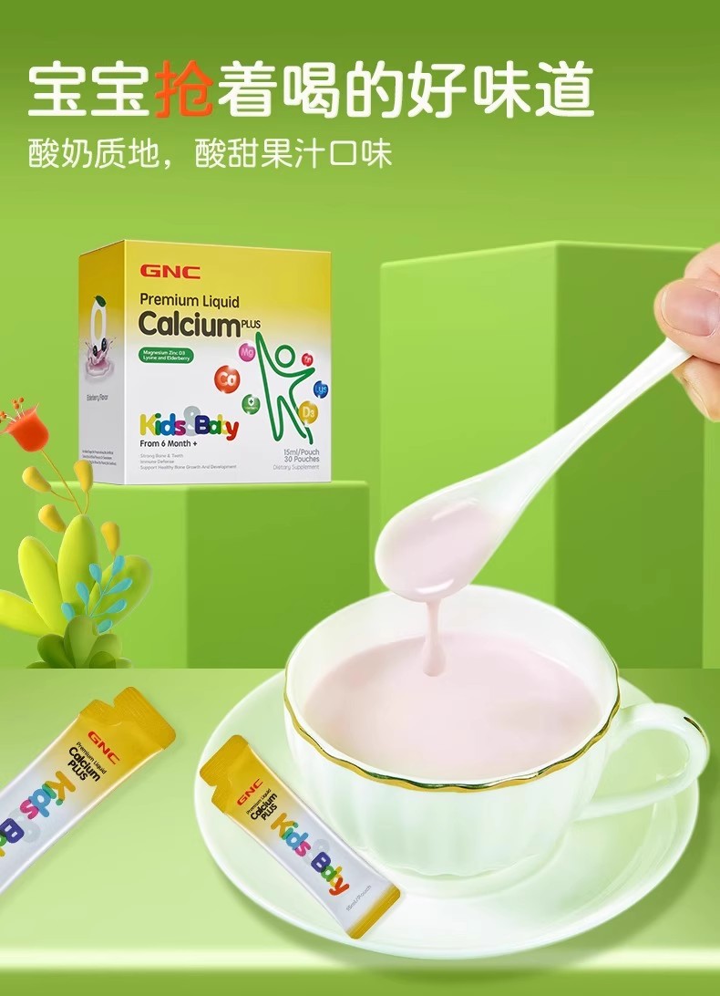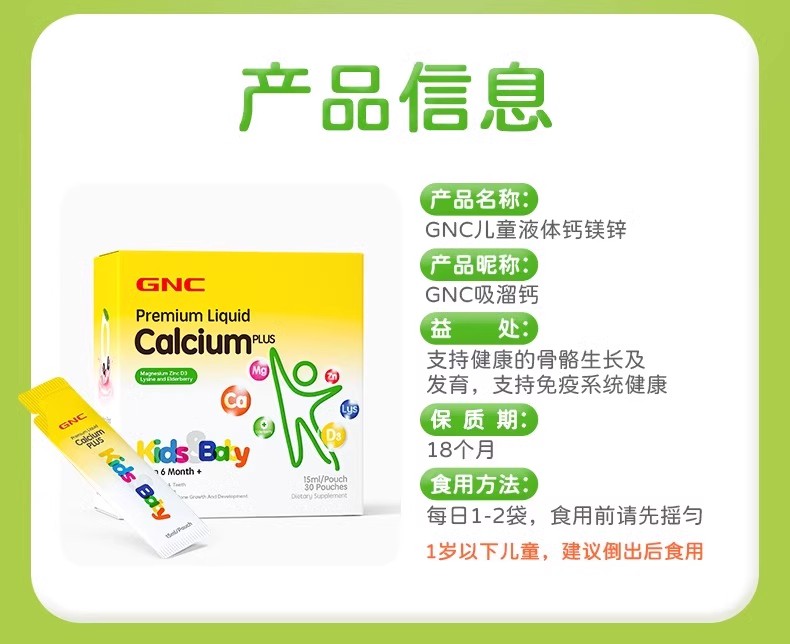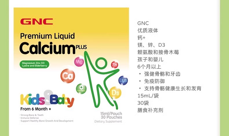 【保税仓】GNC健安喜儿童液体钙镁锌30袋