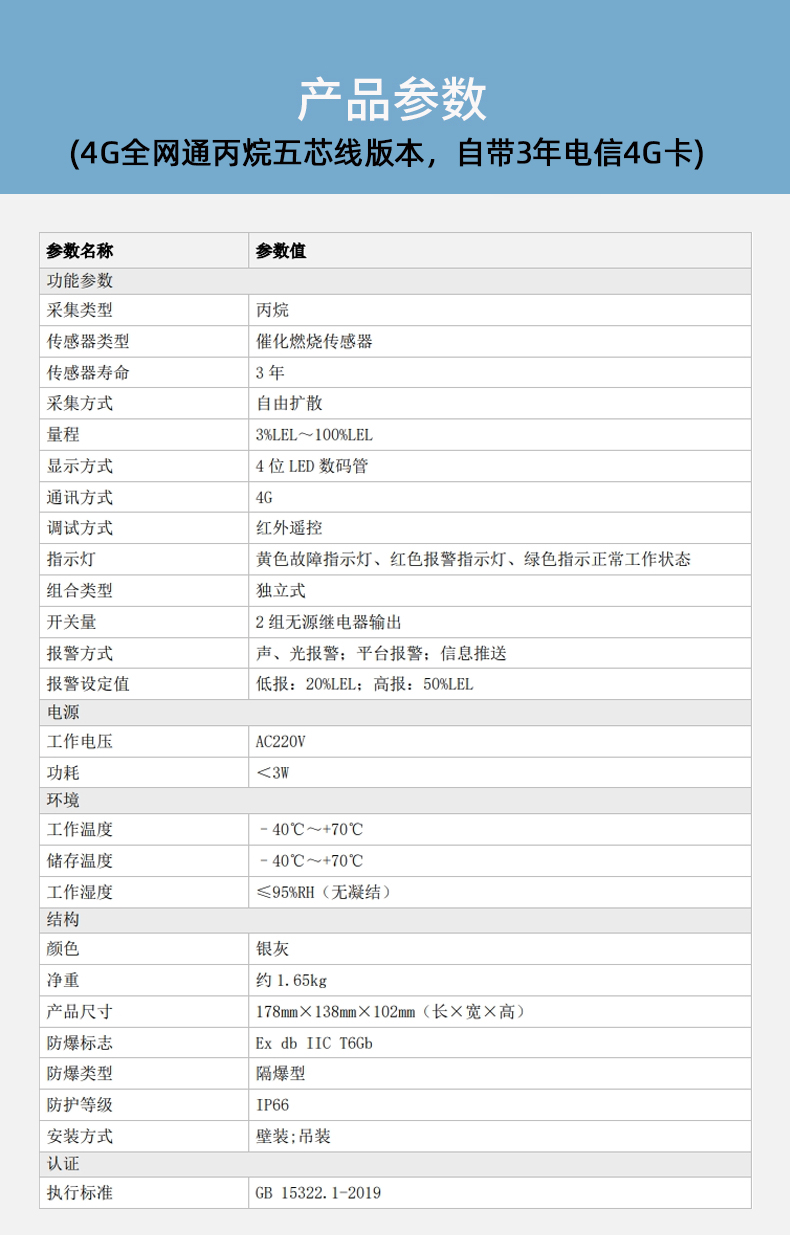 4G工业及商业用途点型可燃气体探测器GTYQ-DH-HY-IGA6GB-Ex