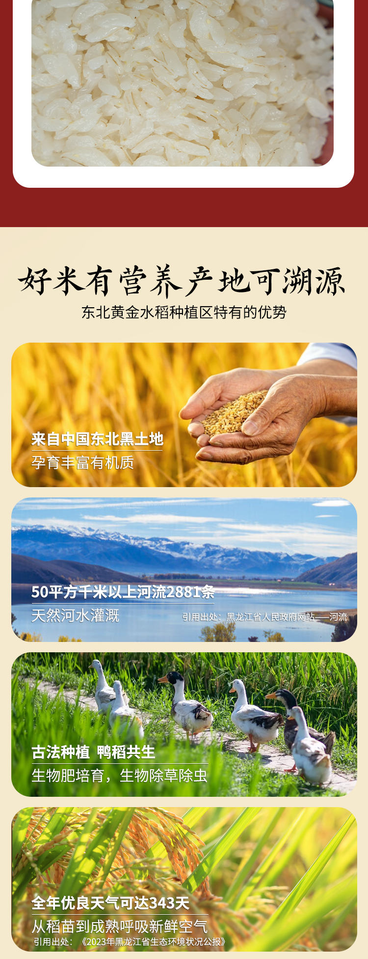 昼夜温差大,光照充足,积温高,水质好,是高端大米生长的必要条件!