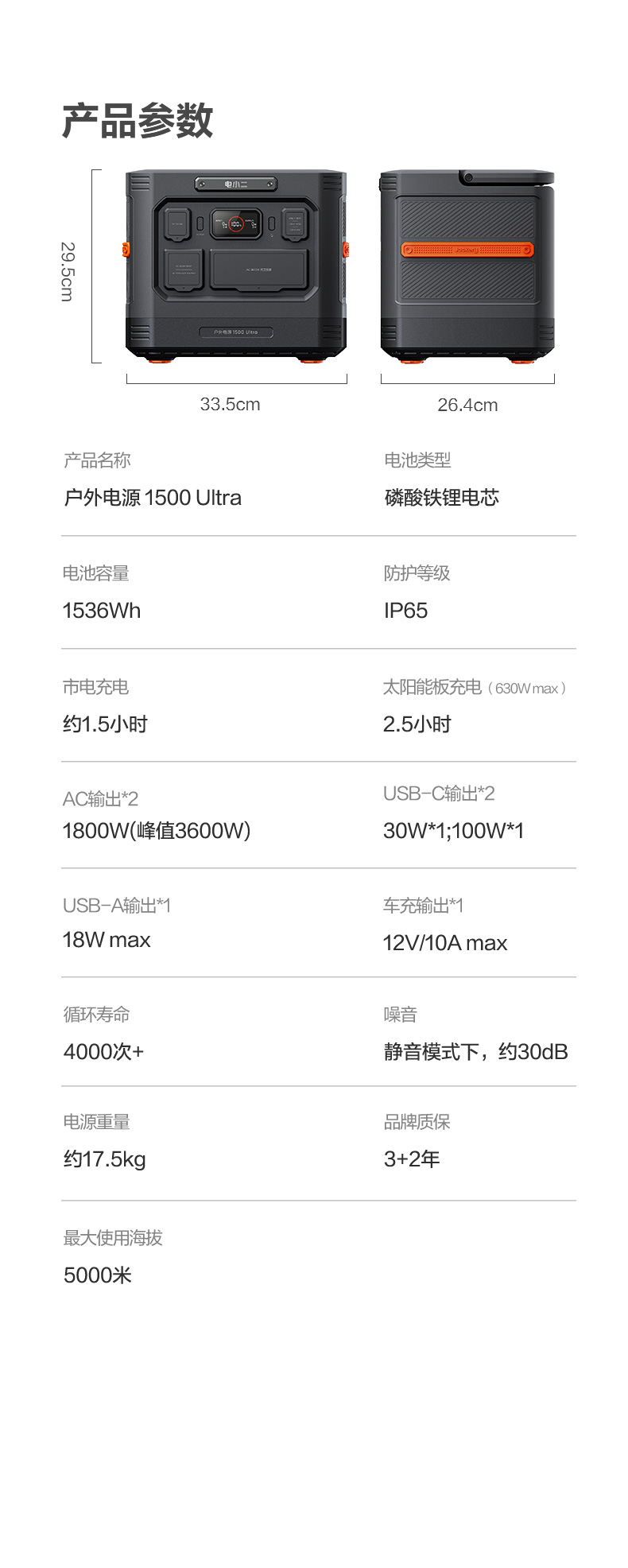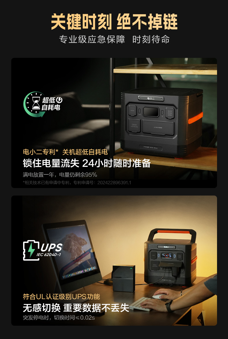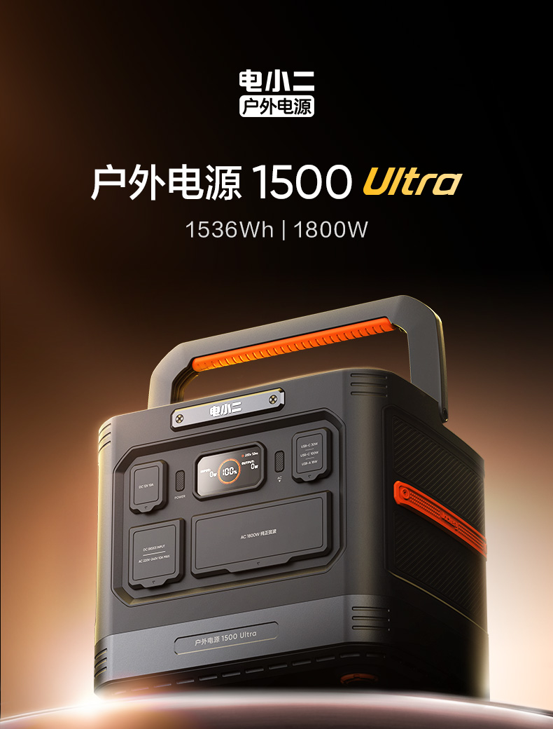 电小二【1.5度电三防新品】1800W大功率大容量快充户外电源220V移动电源车载露营应急储能电池1500 Ultra
