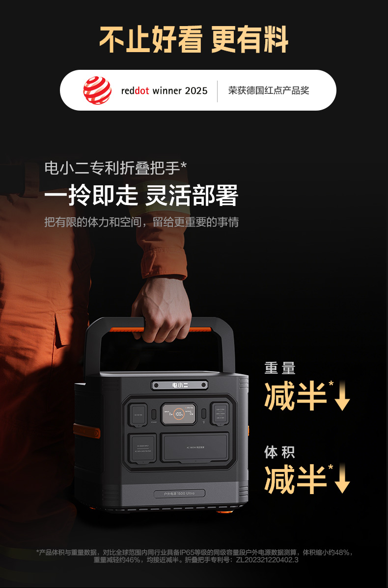 - 电小二户外电源是光充户外电源领导品牌,便携储能行业起草单位之一,致力于提供可持续便携绿色能源解决方案。