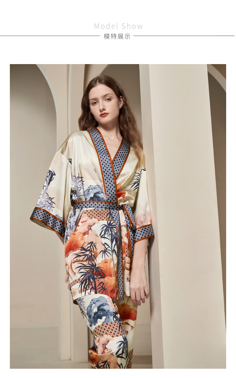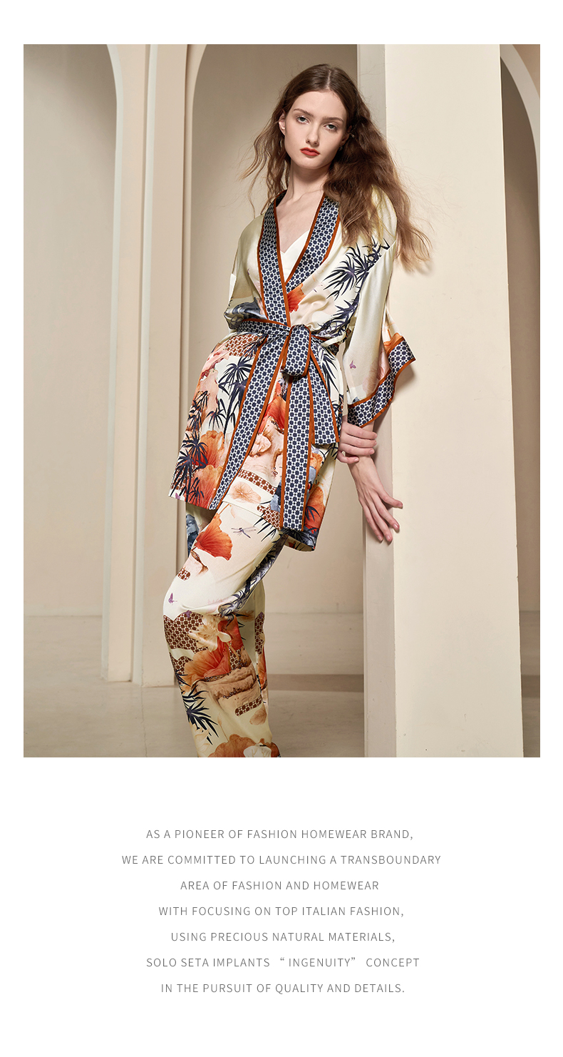 Solo seta22姆米重磅真丝睡衣套桑蚕丝睡袍家居服高级感定位印花