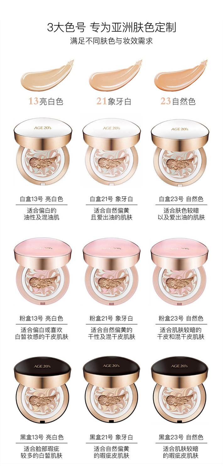 韩国AEKYUNG 爱敬三色拉花系列气垫 13号色/21号色 赠替换装(效期至2028年1月)