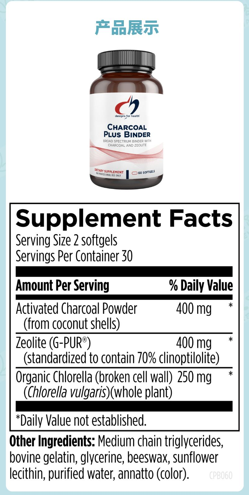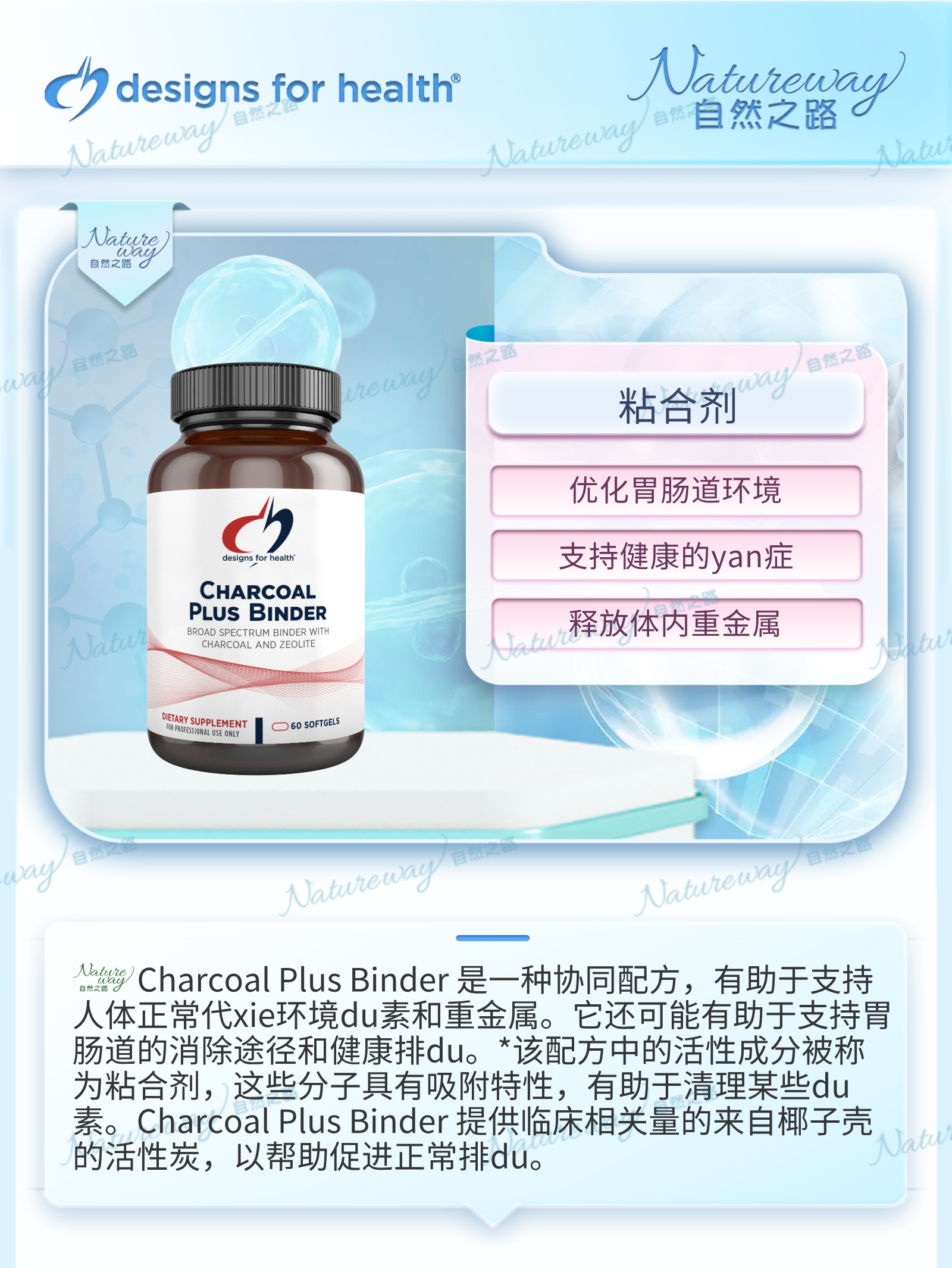 自然之路 健康设计Charcoal Plus BinderDu素粘合剂60粒