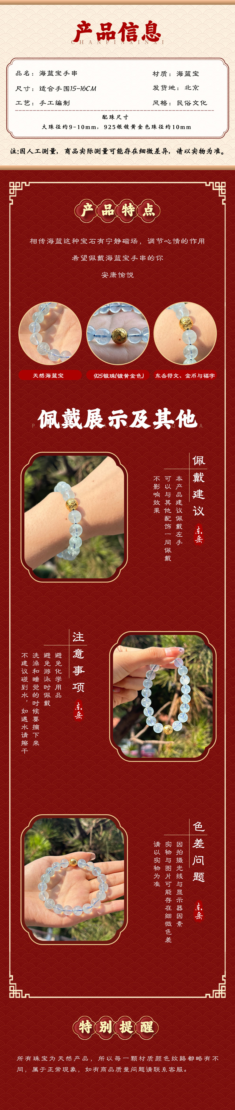 海蓝宝金珠手串