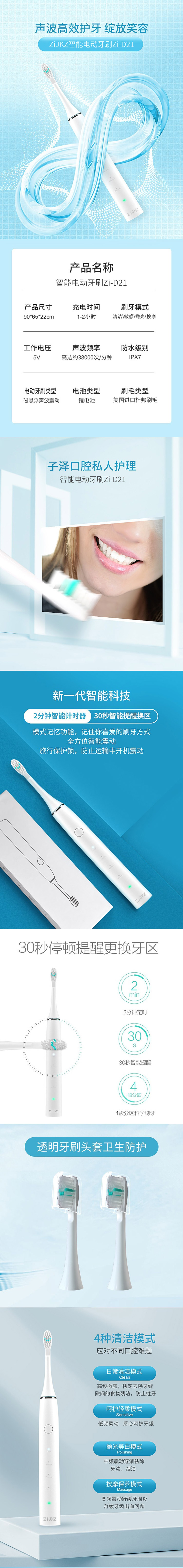 ZiJKZ子泽 电动牙刷 成人男女软毛清洁 智能声波 电动牙刷 Zi-D21