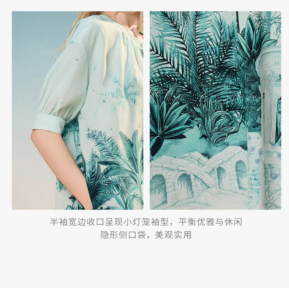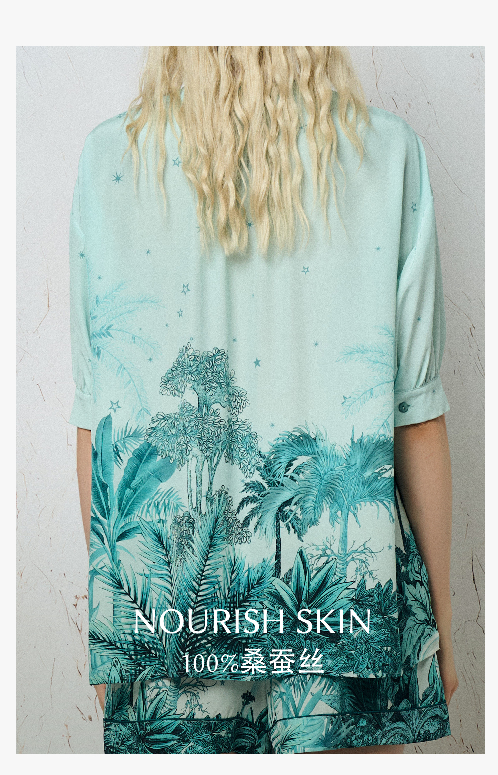 Soloseta女士真丝海边度假风睡衣套装桑蚕丝短袖短裤印花2025年秋
