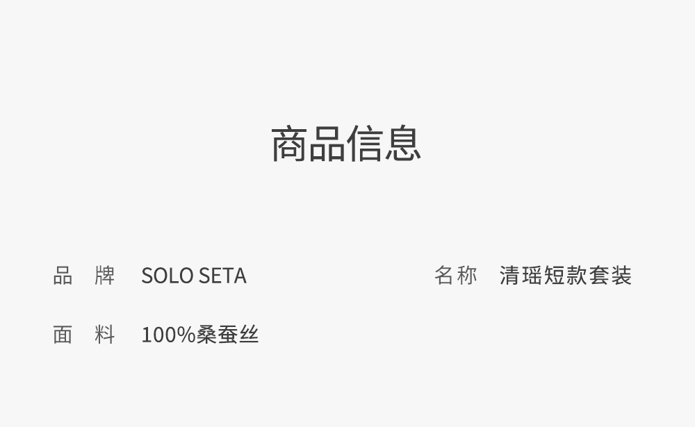 - soloseta专注于真丝织物,灵感源自意大利语,中文含义为“只做真丝”的意思。让睡衣变时尚,居家和外出瞬间切换,使其更具有出街,度假,参加宴会等功能。