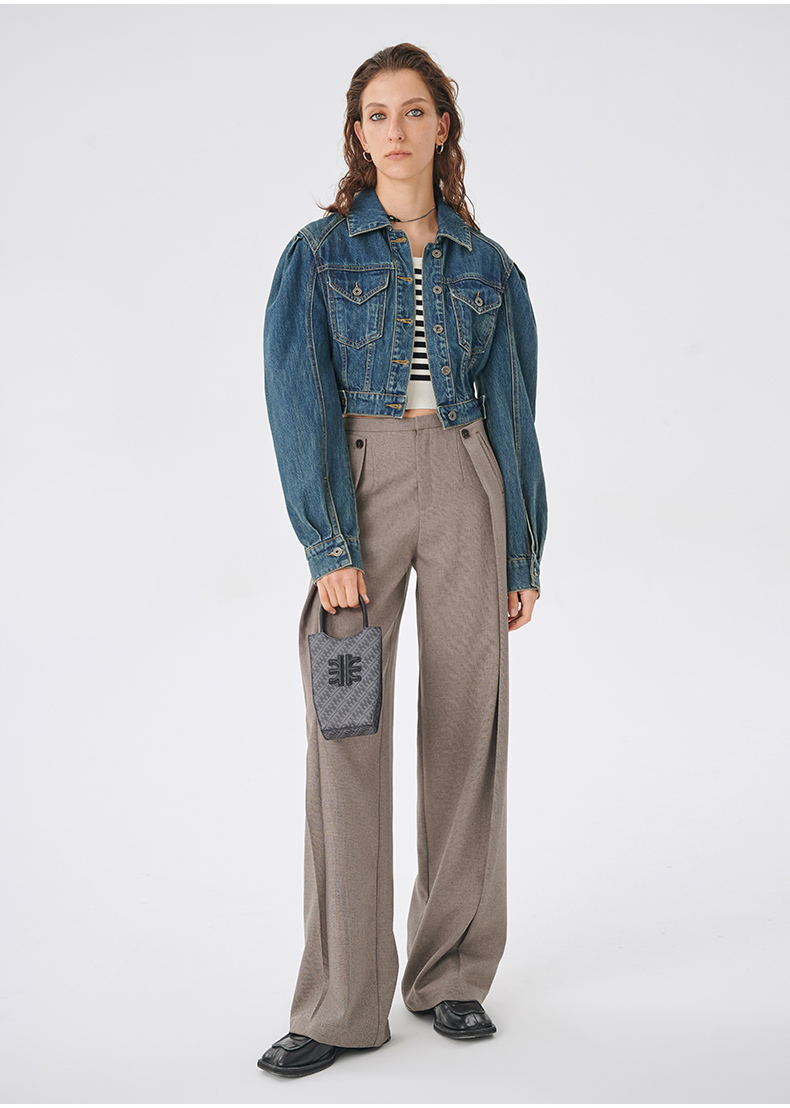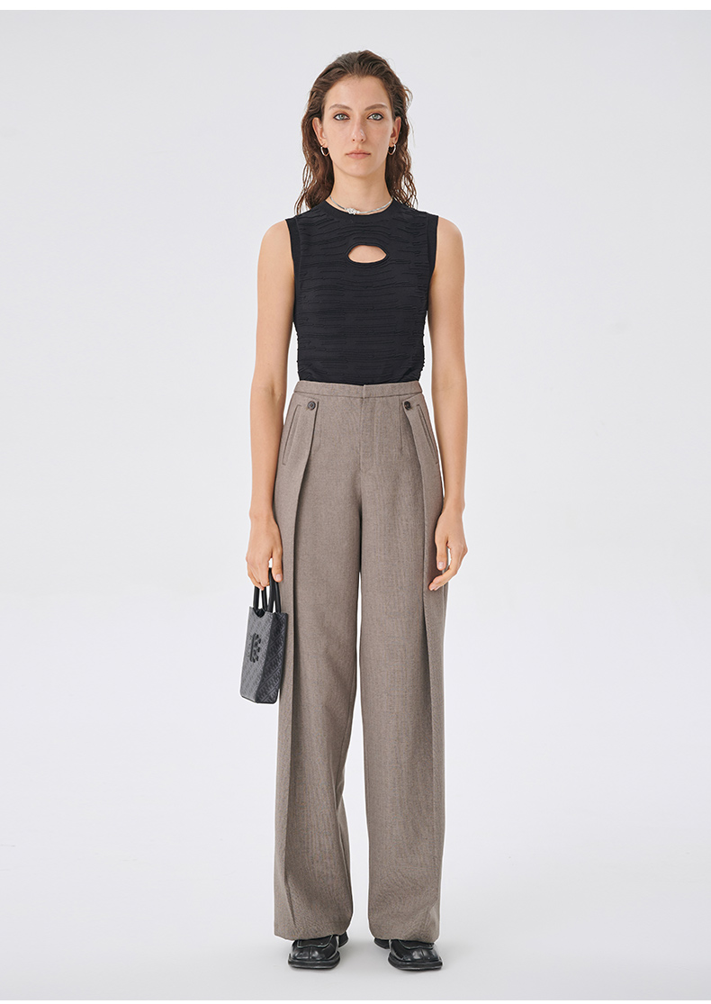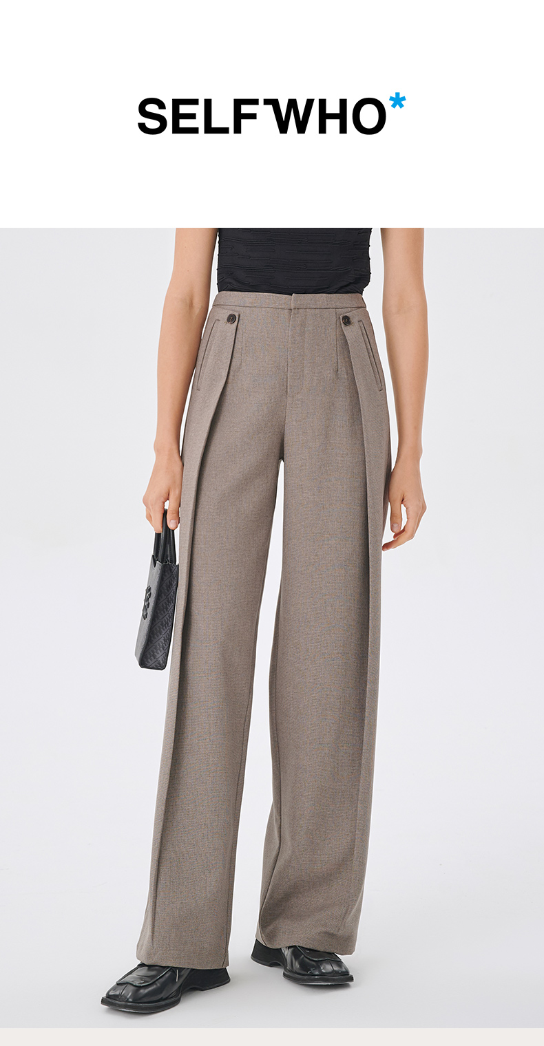 Self Who2023新品松紧细腰头结构感西装裤摩登时髦褶皱休闲长裤子