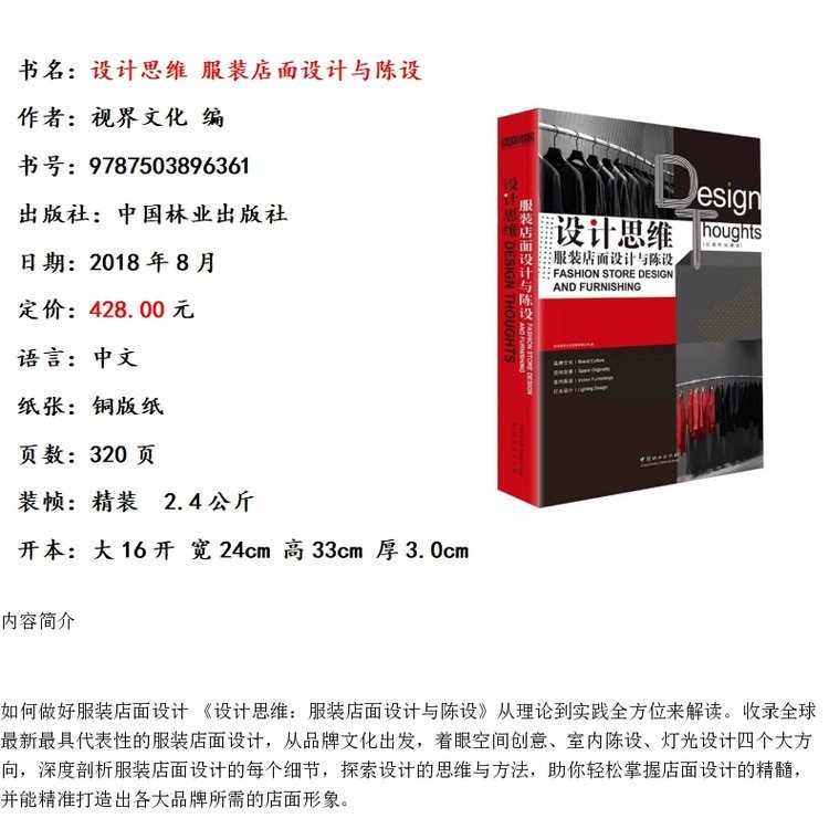 设计思维 服装店面设计与陈设9636 空间创意室内陈设灯光设计深度剖析服装店面设计的每个细节 室内装饰装修设计书 中国林业出版社
