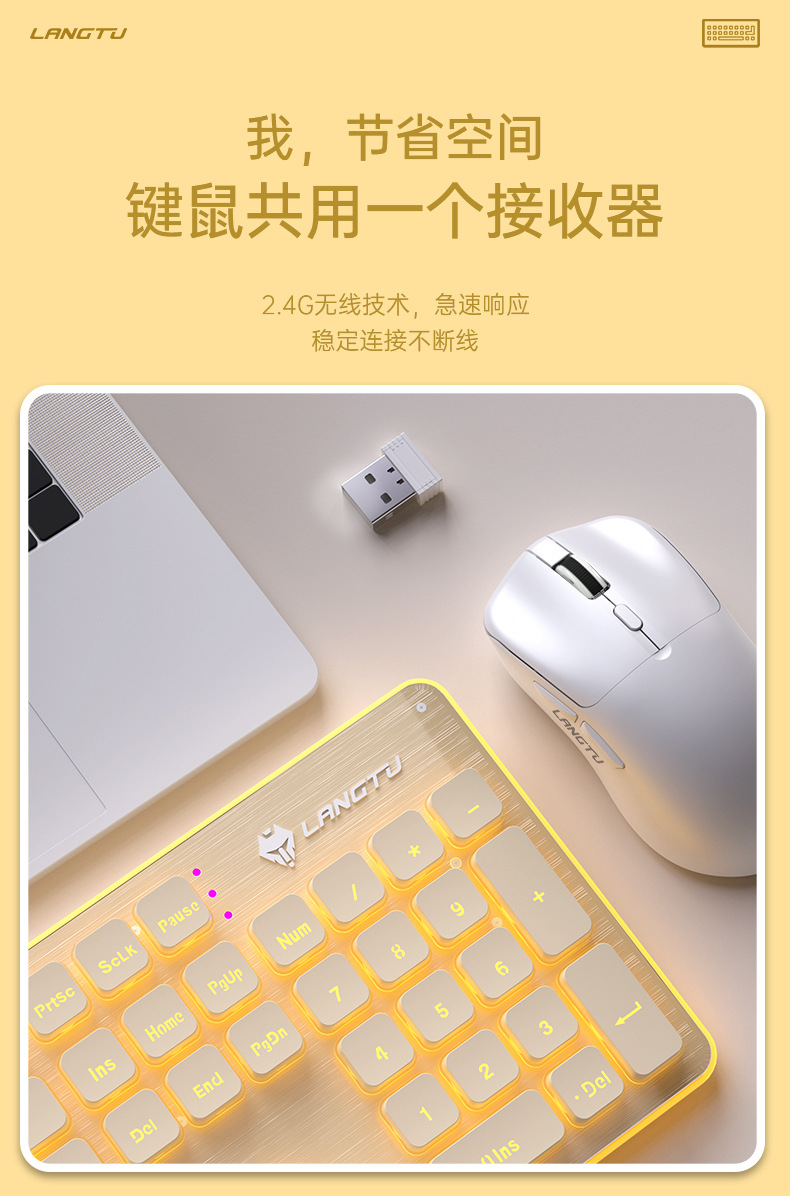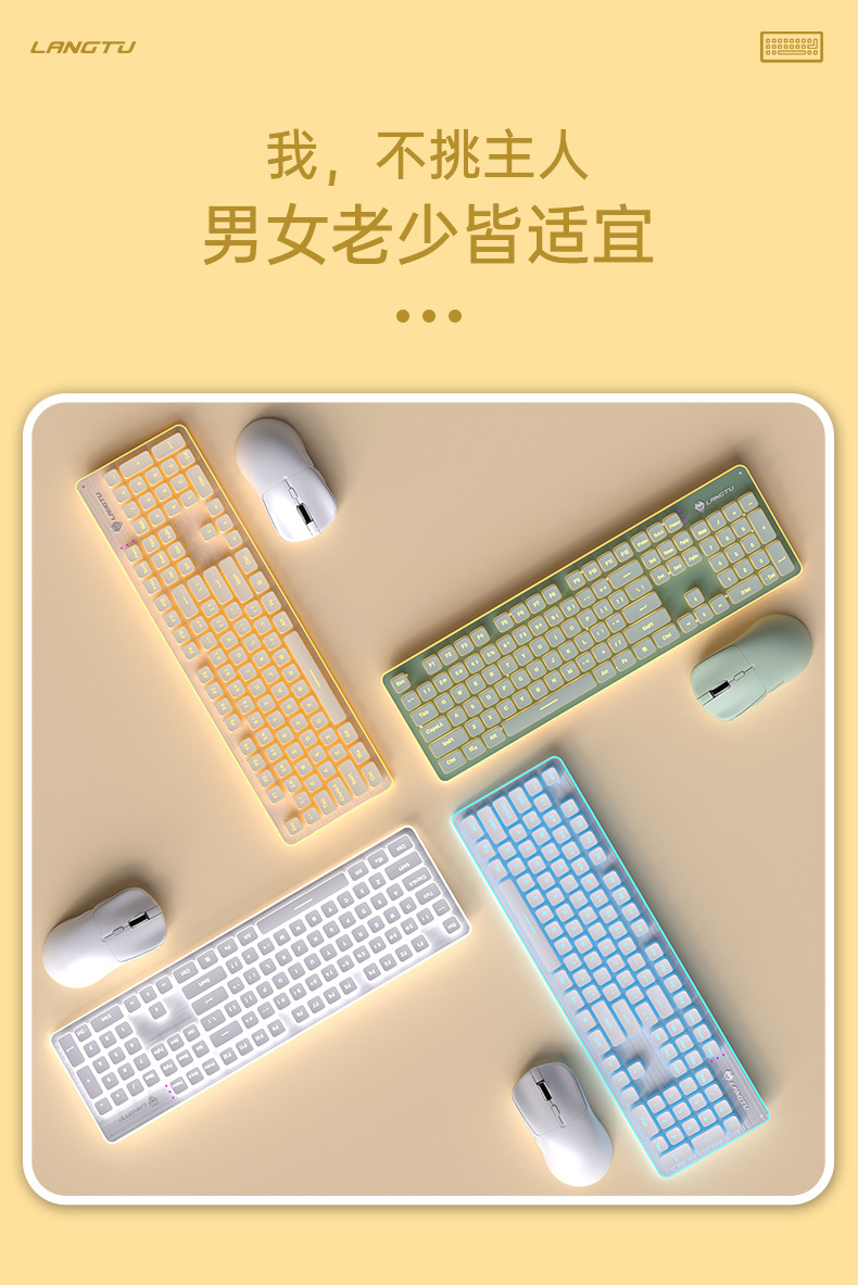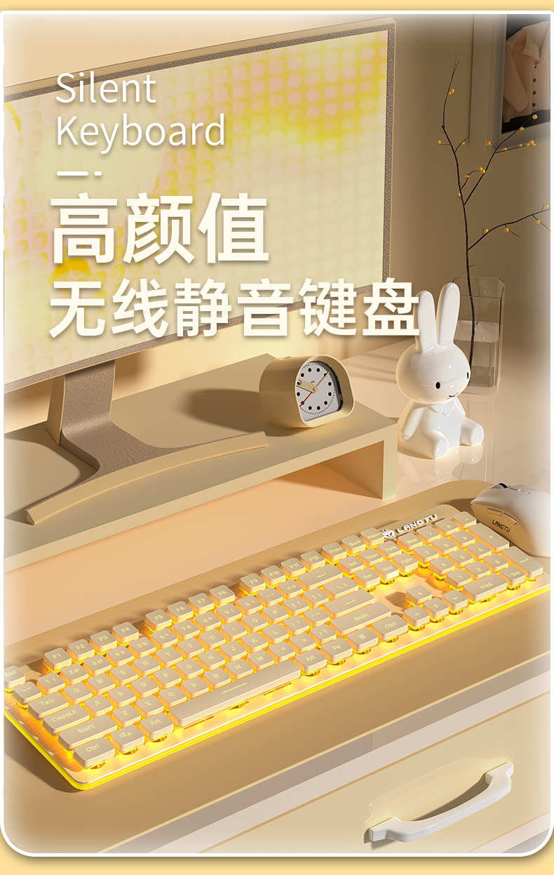 【高颜值!无线静音键盘套装!】狼途LT600机械手感静音无线键盘 笔记本办公防水 礼品键盘鼠标套装-QQ