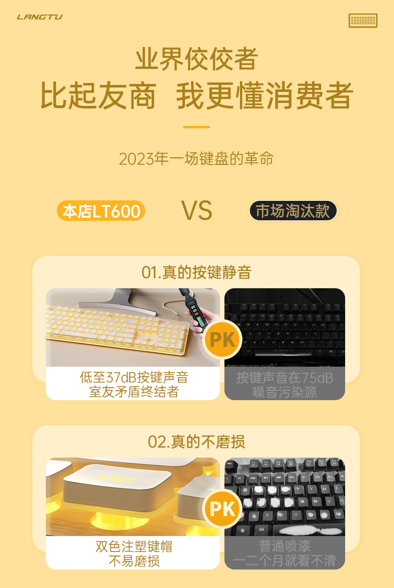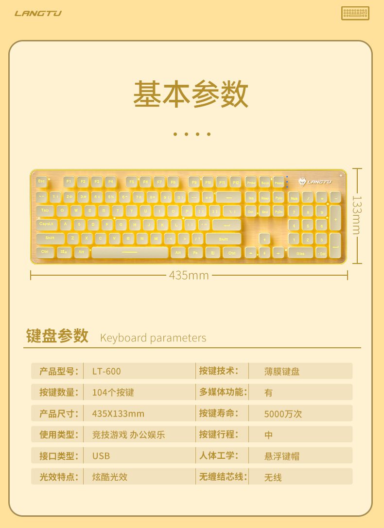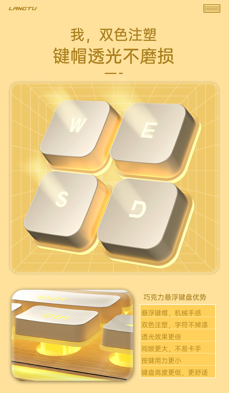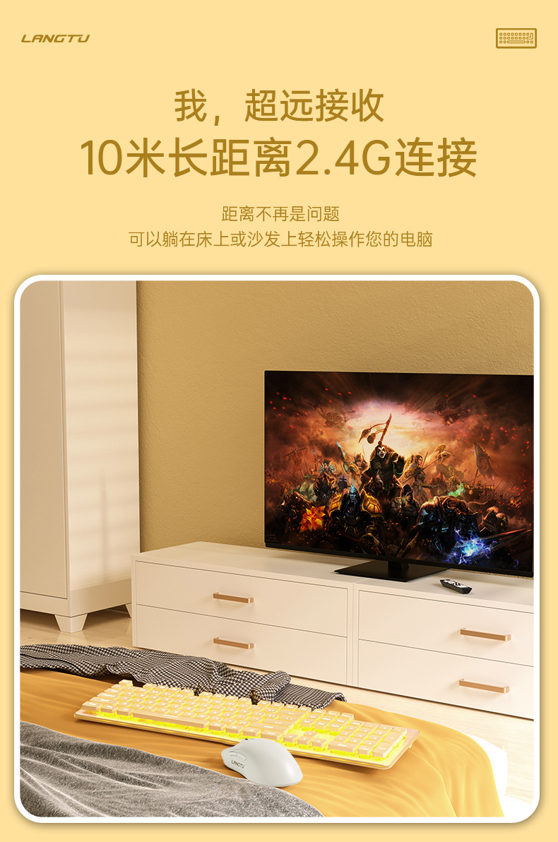 【高颜值!无线静音键盘套装!】狼途LT600机械手感静音无线键盘 笔记本办公防水 礼品键盘鼠标套装-QQ