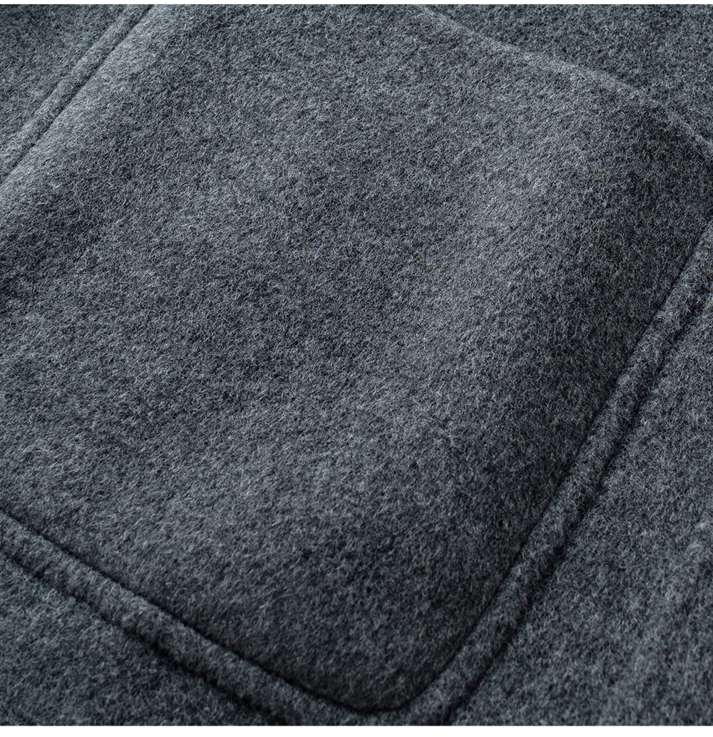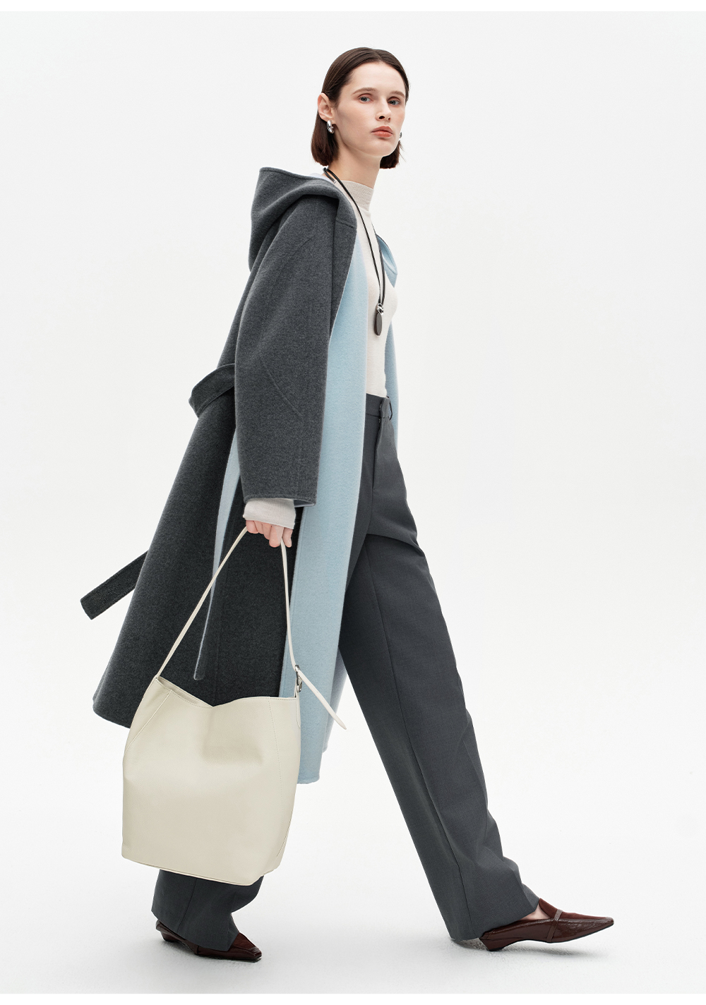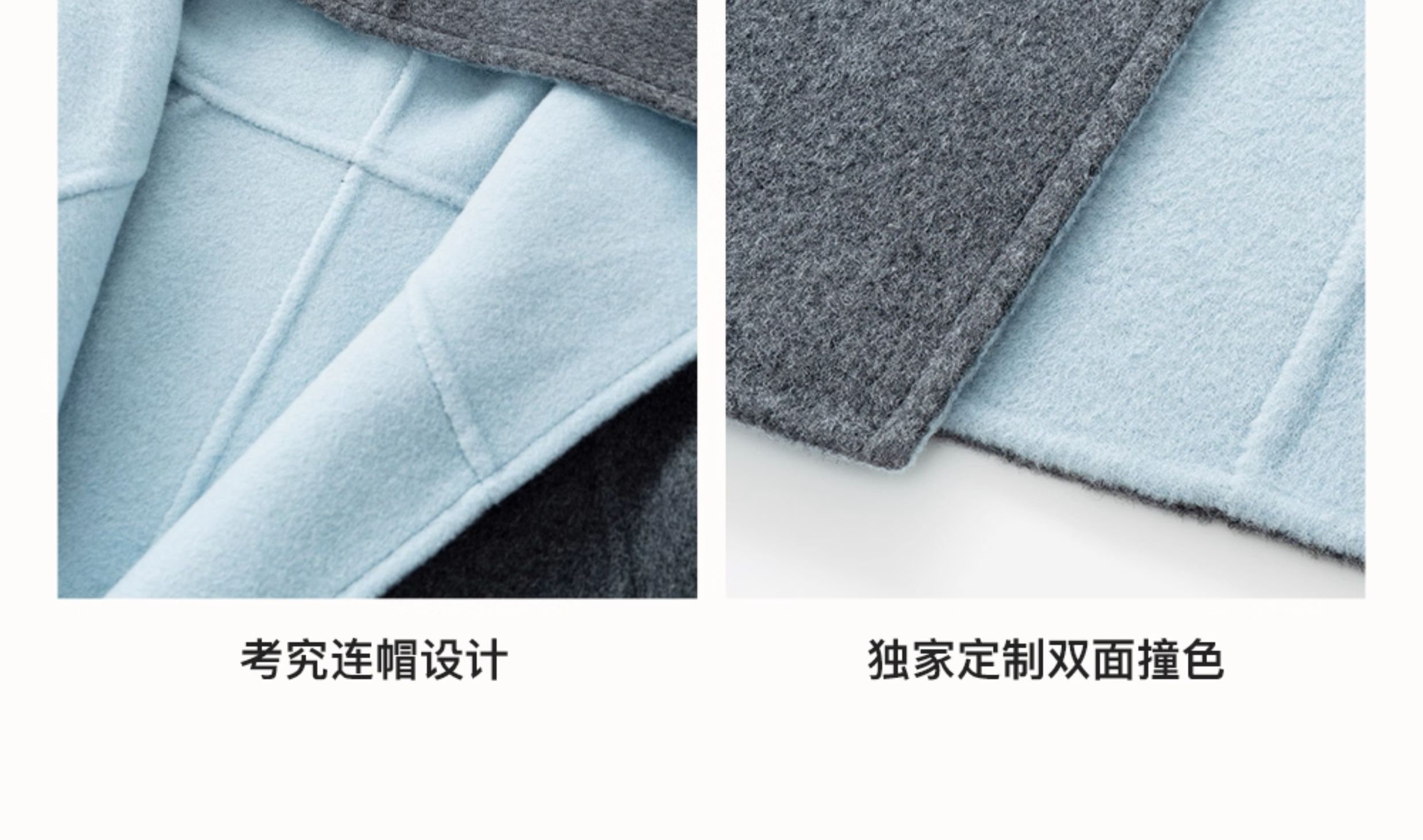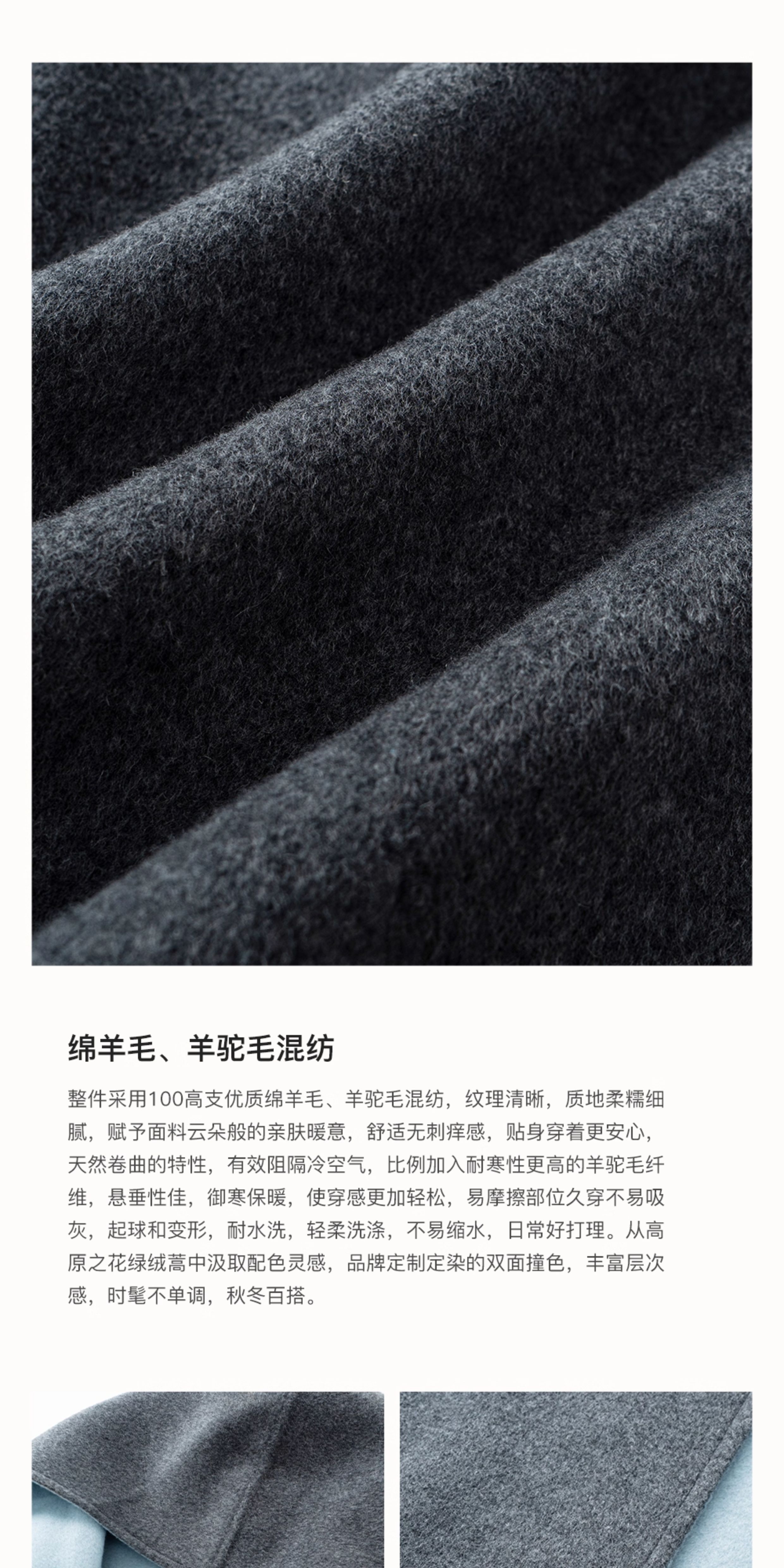 SELFWHO绵羊毛混纺浴袍式撞色毛呢外套女2025冬新款腰带连帽大衣