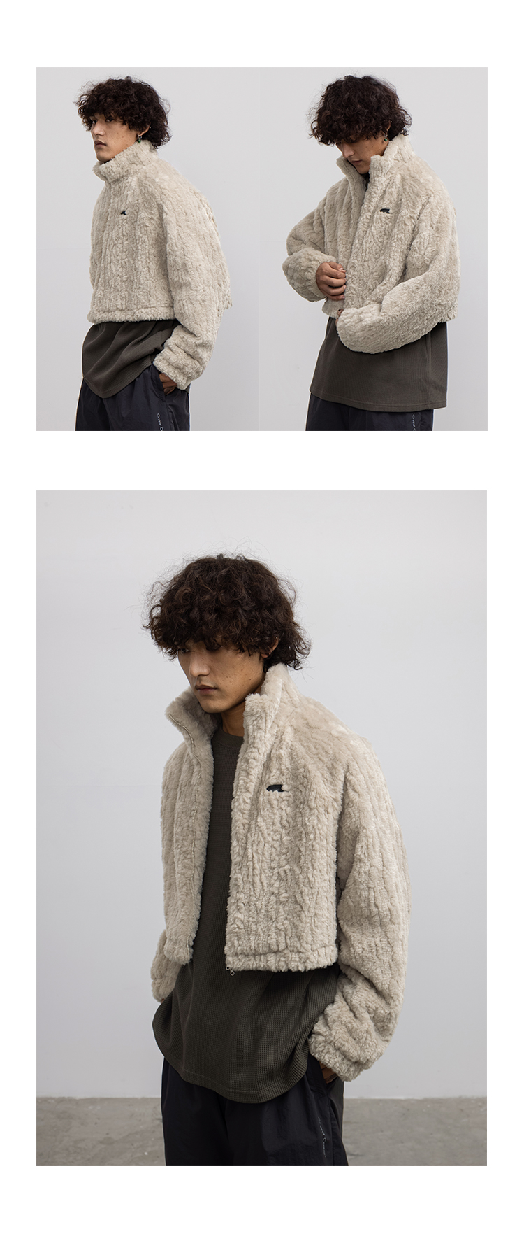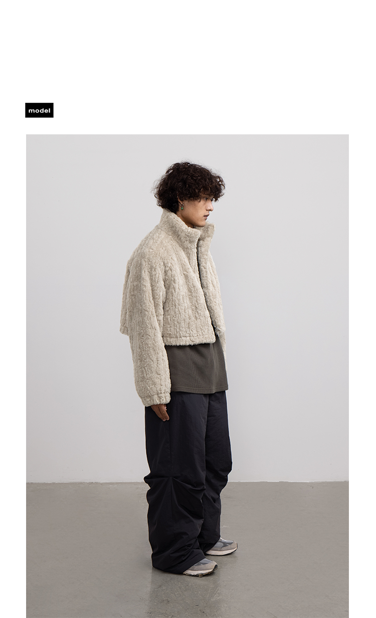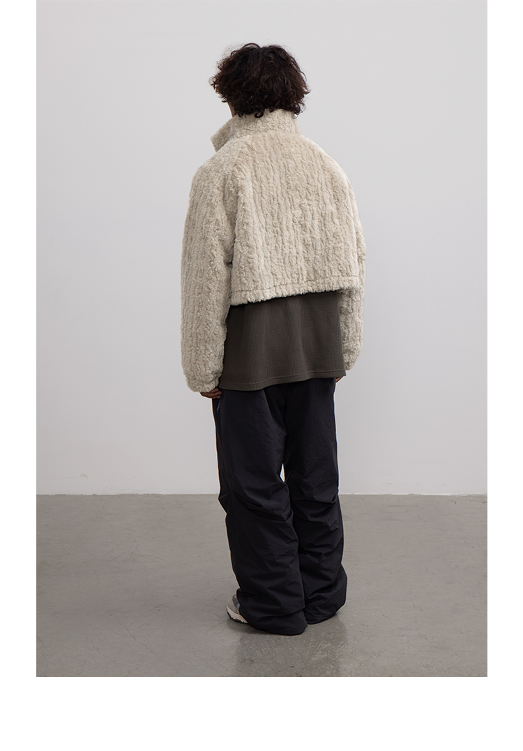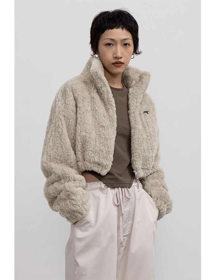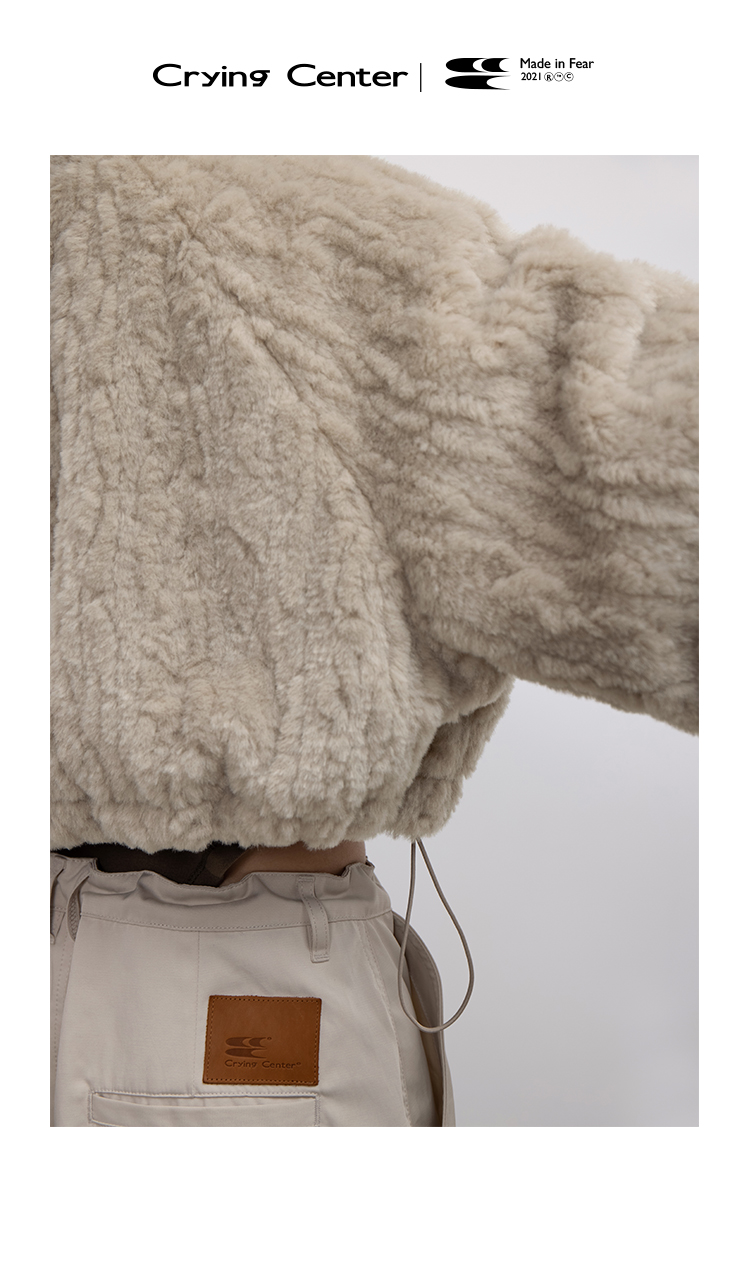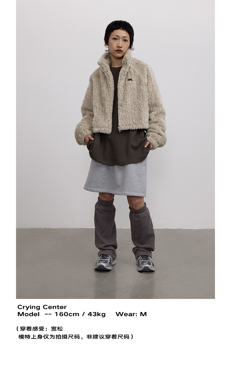 CryingCenter 贡米灰仿兔毛双向拉链加棉短款毛绒外套 哭喊中心