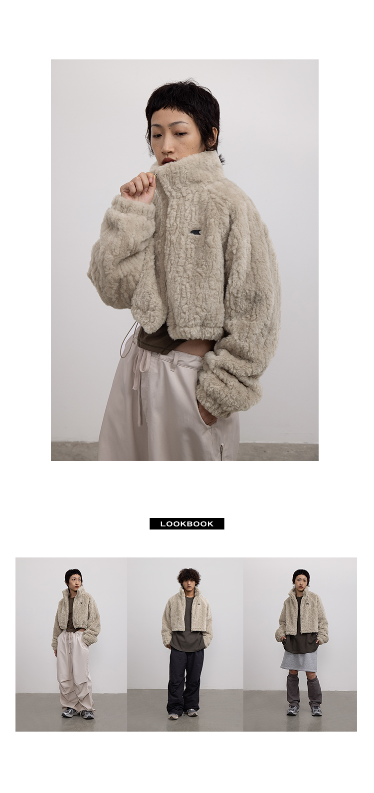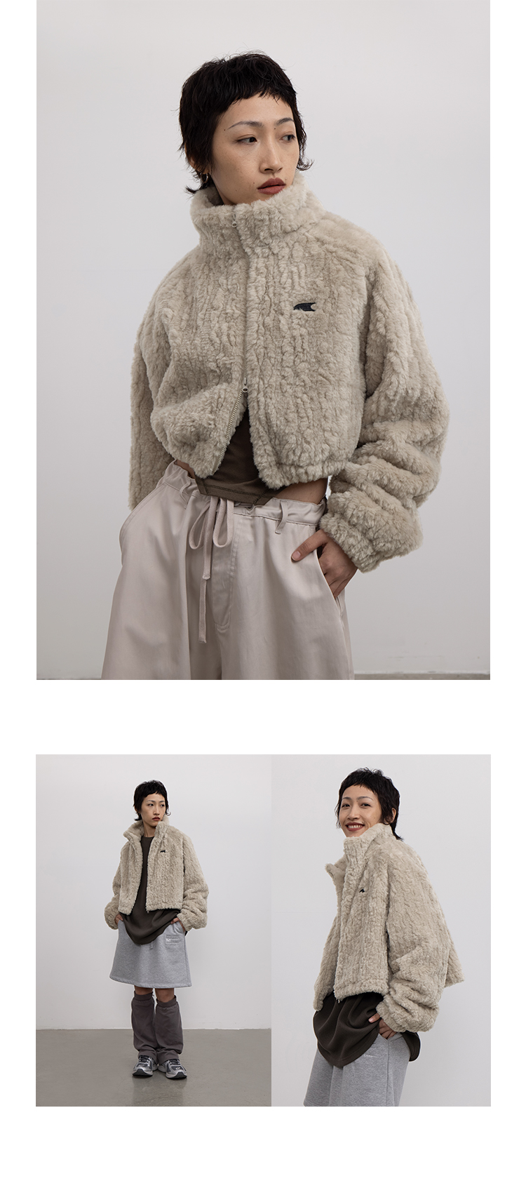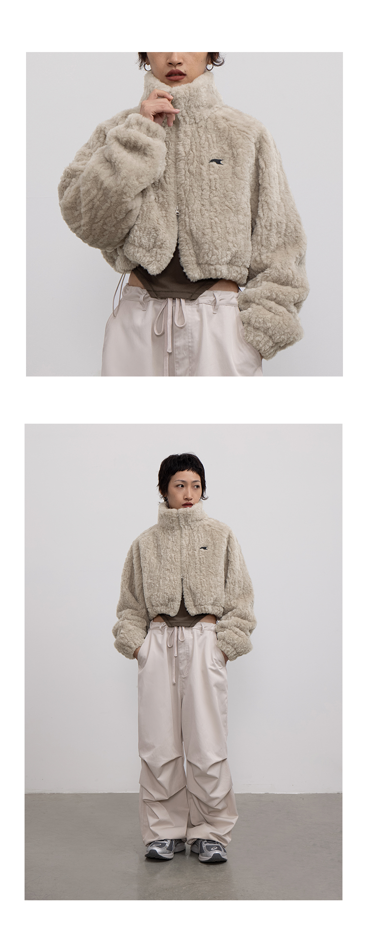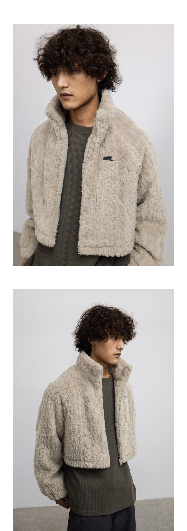 CryingCenter 贡米灰仿兔毛双向拉链加棉短款毛绒外套 哭喊中心