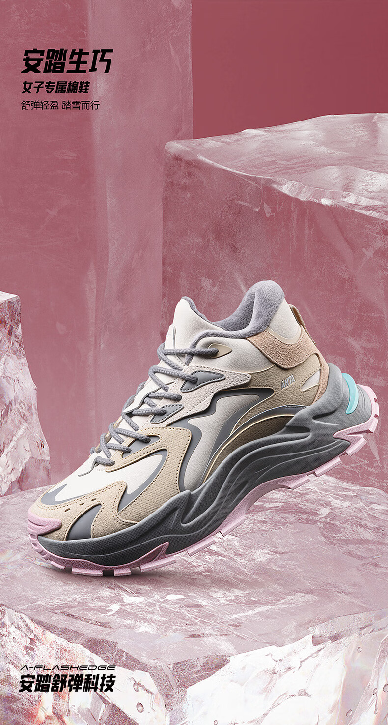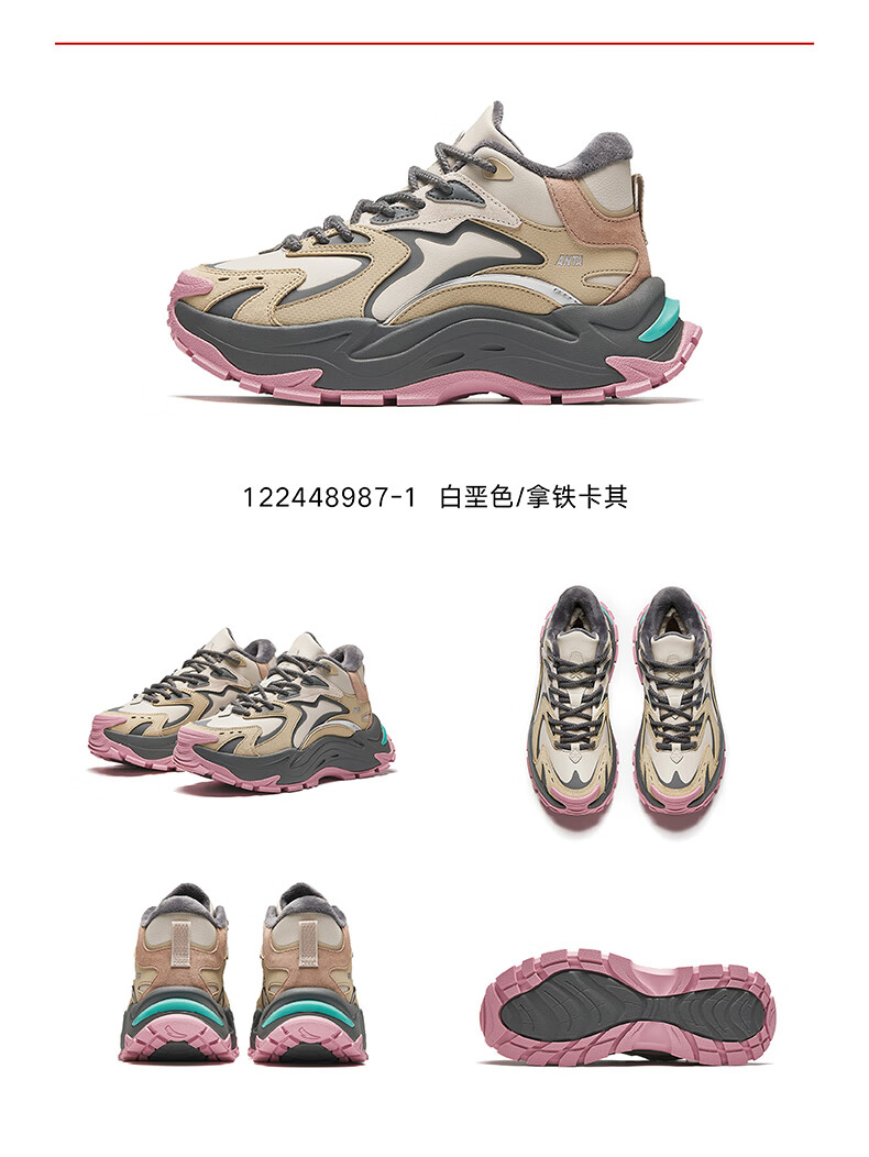安踏生巧鞋丨加绒保暖高帮棉鞋女冬季新款革面厚底女鞋122448987