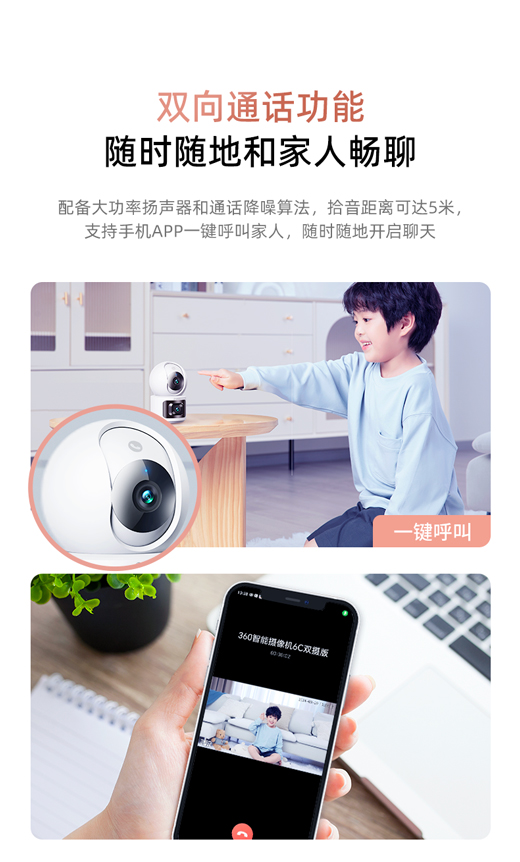【超值】360摄像头8Max 4K 室内监控 AI 360度全景摄像头 一键呼叫 超微光全彩 镜头遮蔽