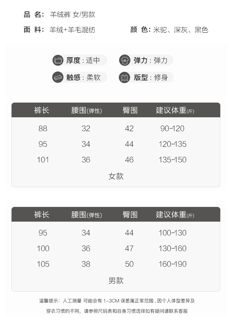 打底神裤~68/3精纺16针羊 绒裤打底裤男女同款