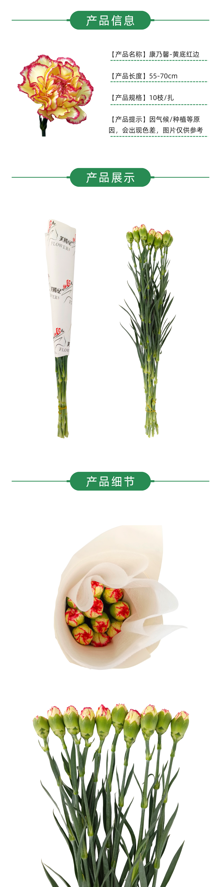 单头康乃馨 黄底红边 10枝一扎