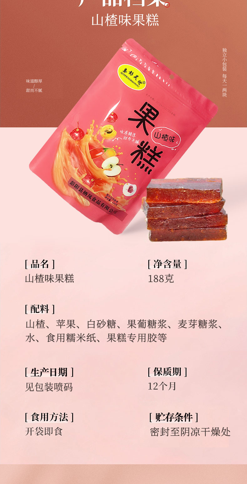 亲彭昊优山楂味果糕188g(KBJ)(仅限福建省内配送,满400元包邮)