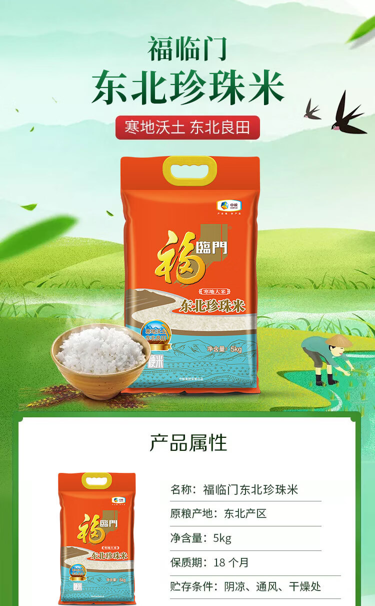 中粮 福临门寒地东北珍珠米5kg