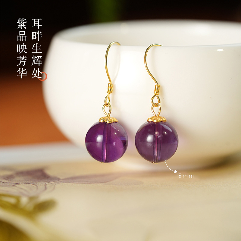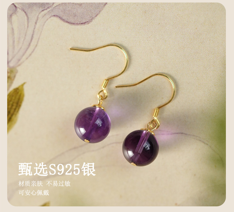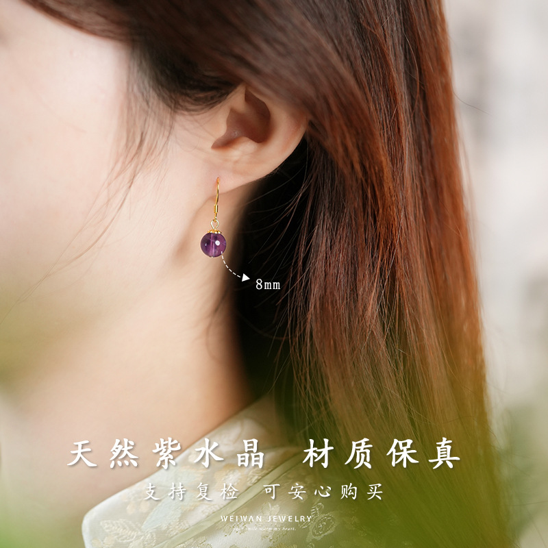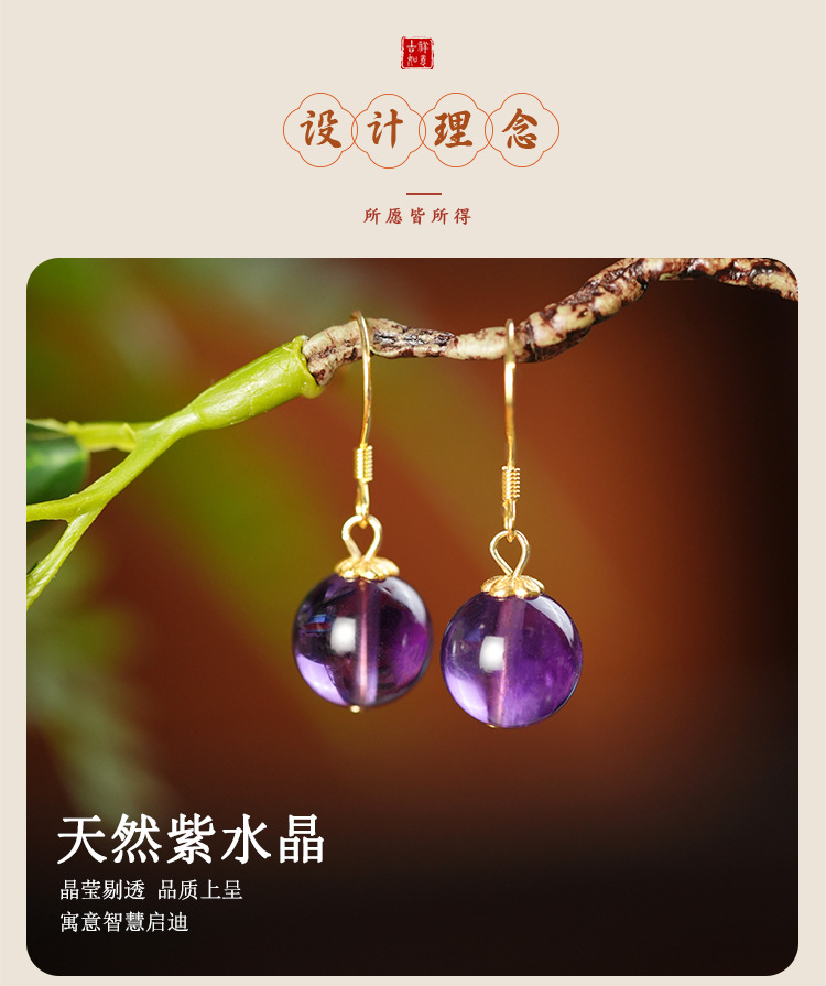 【敦煌温柔月光·紫水晶耳环】敦煌小众天然水晶耳环女 925银新中式古风耳饰养耳洞小众