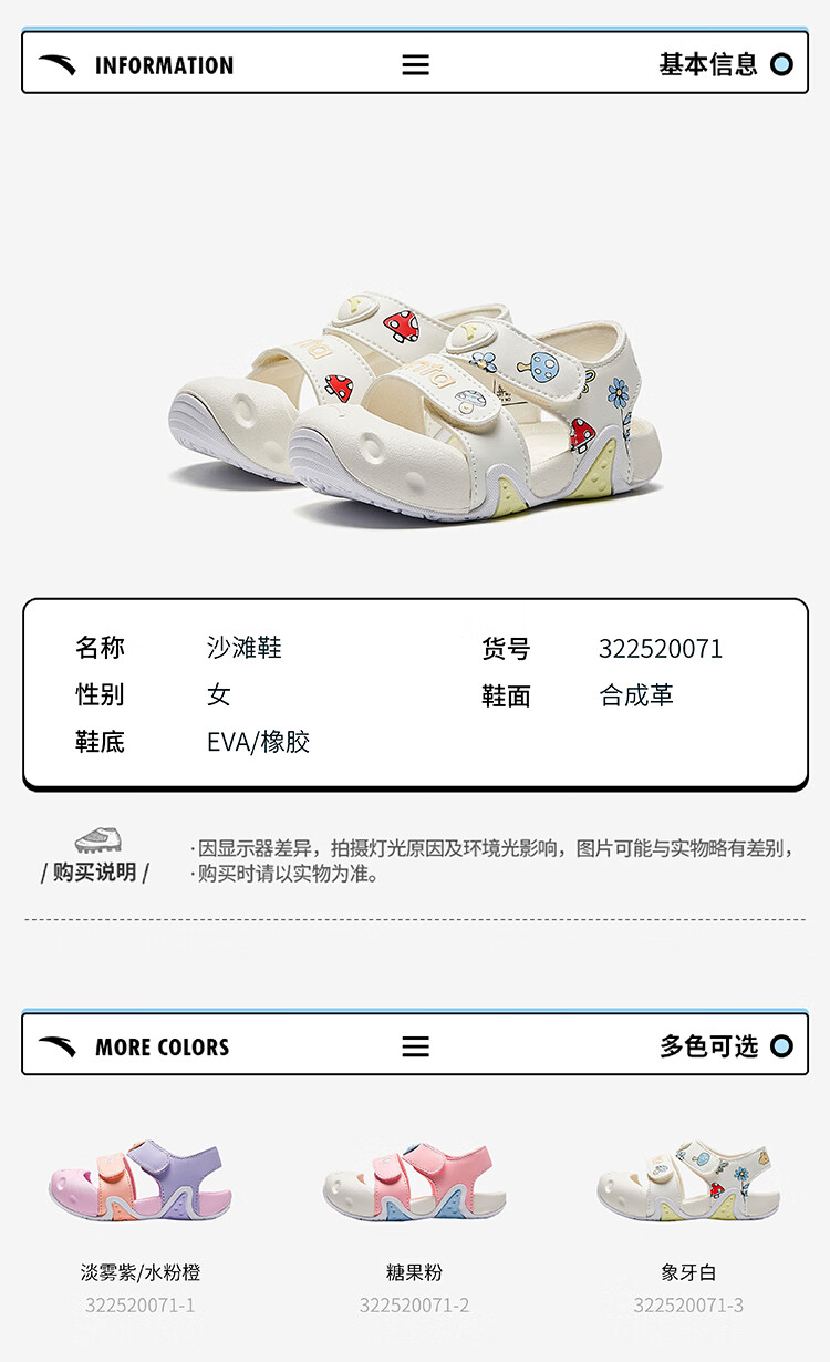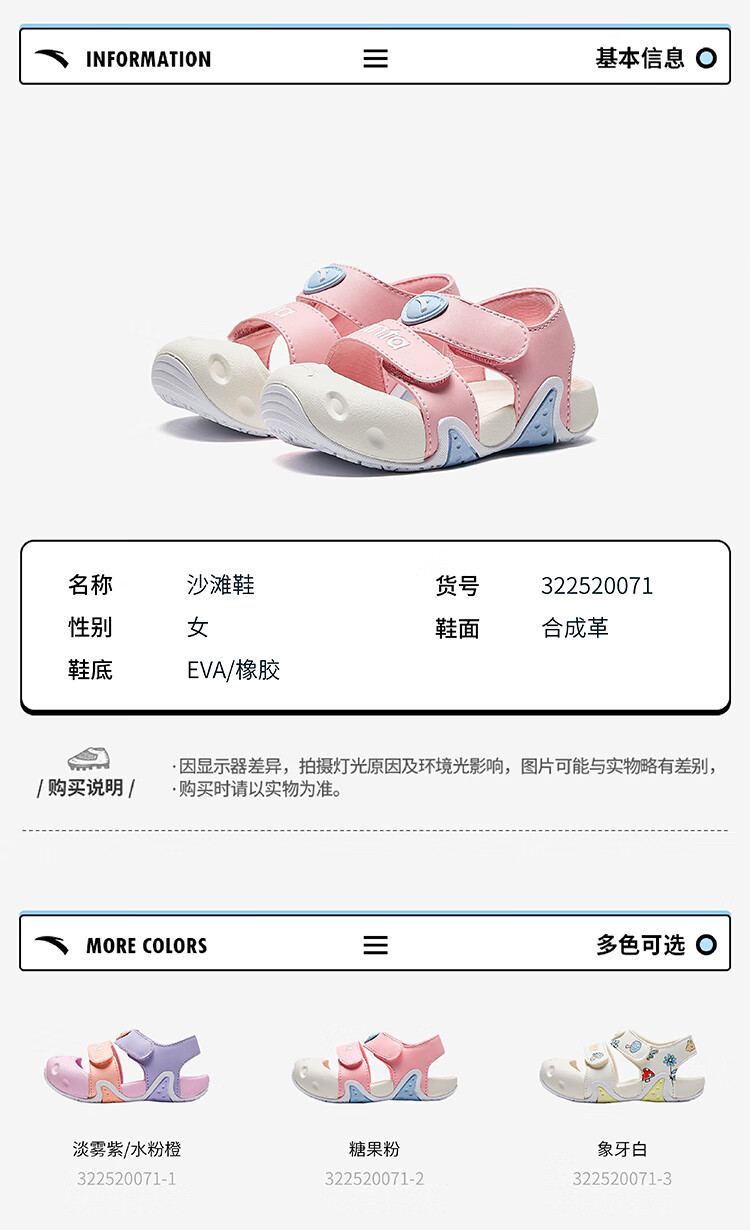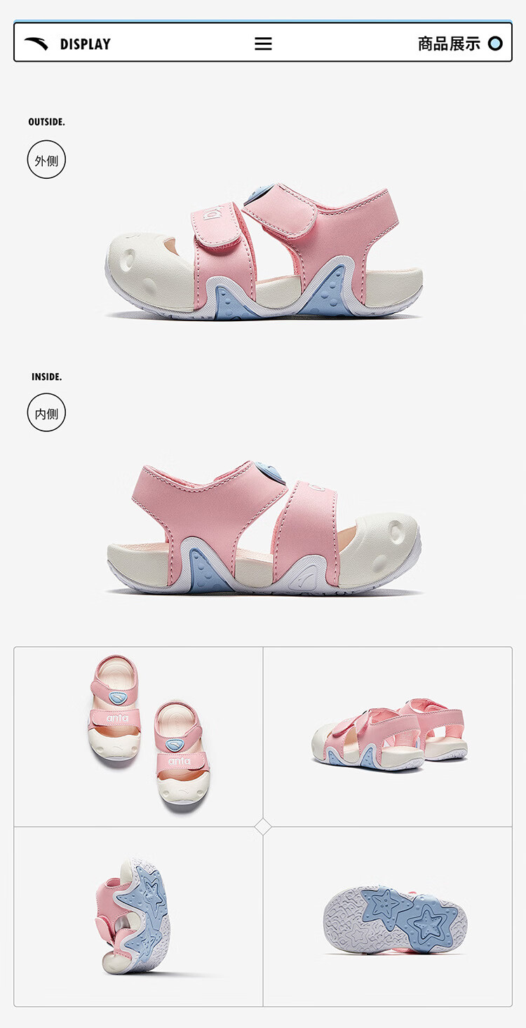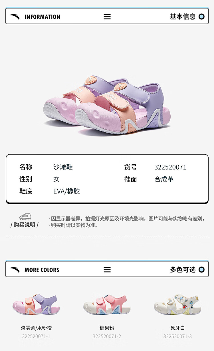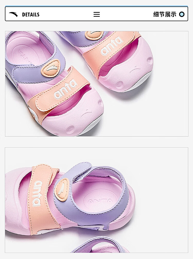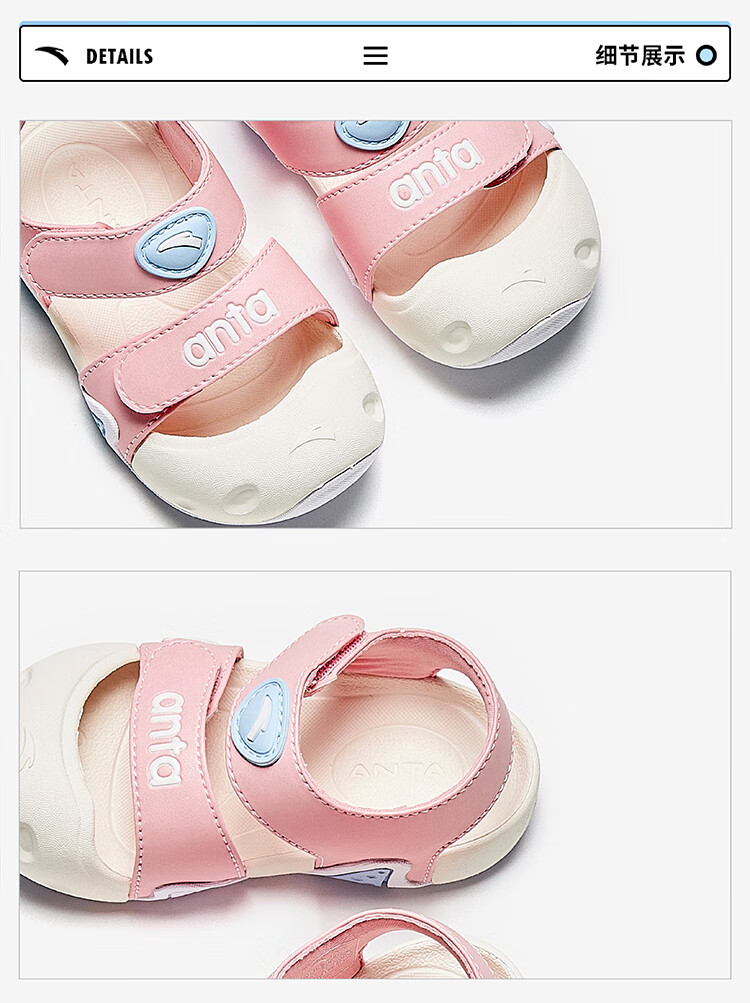 安踏儿童运动鞋女婴童犟弹科技户外系列搭扣低帮海星沙滩鞋322520071