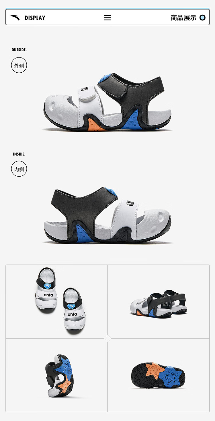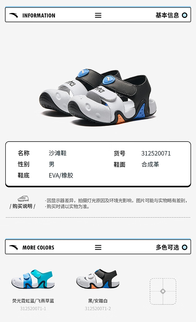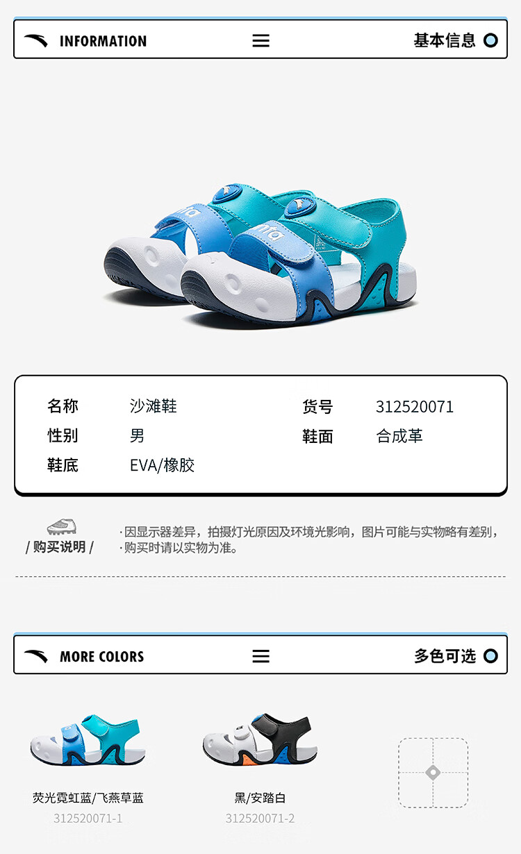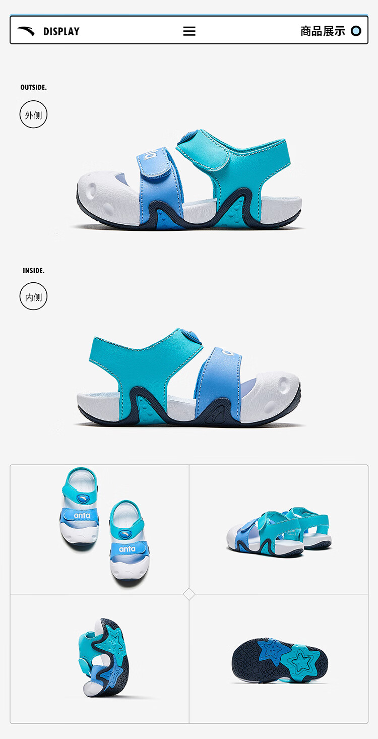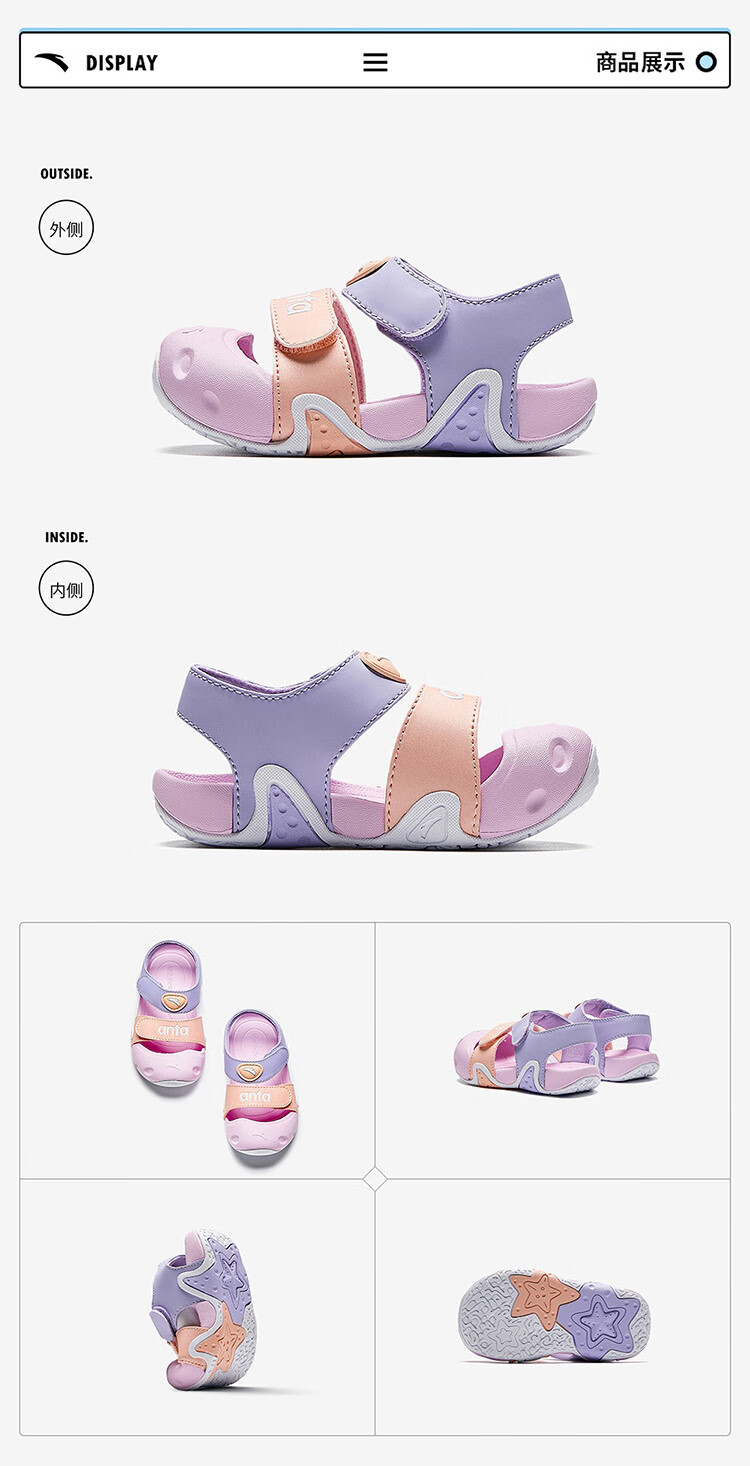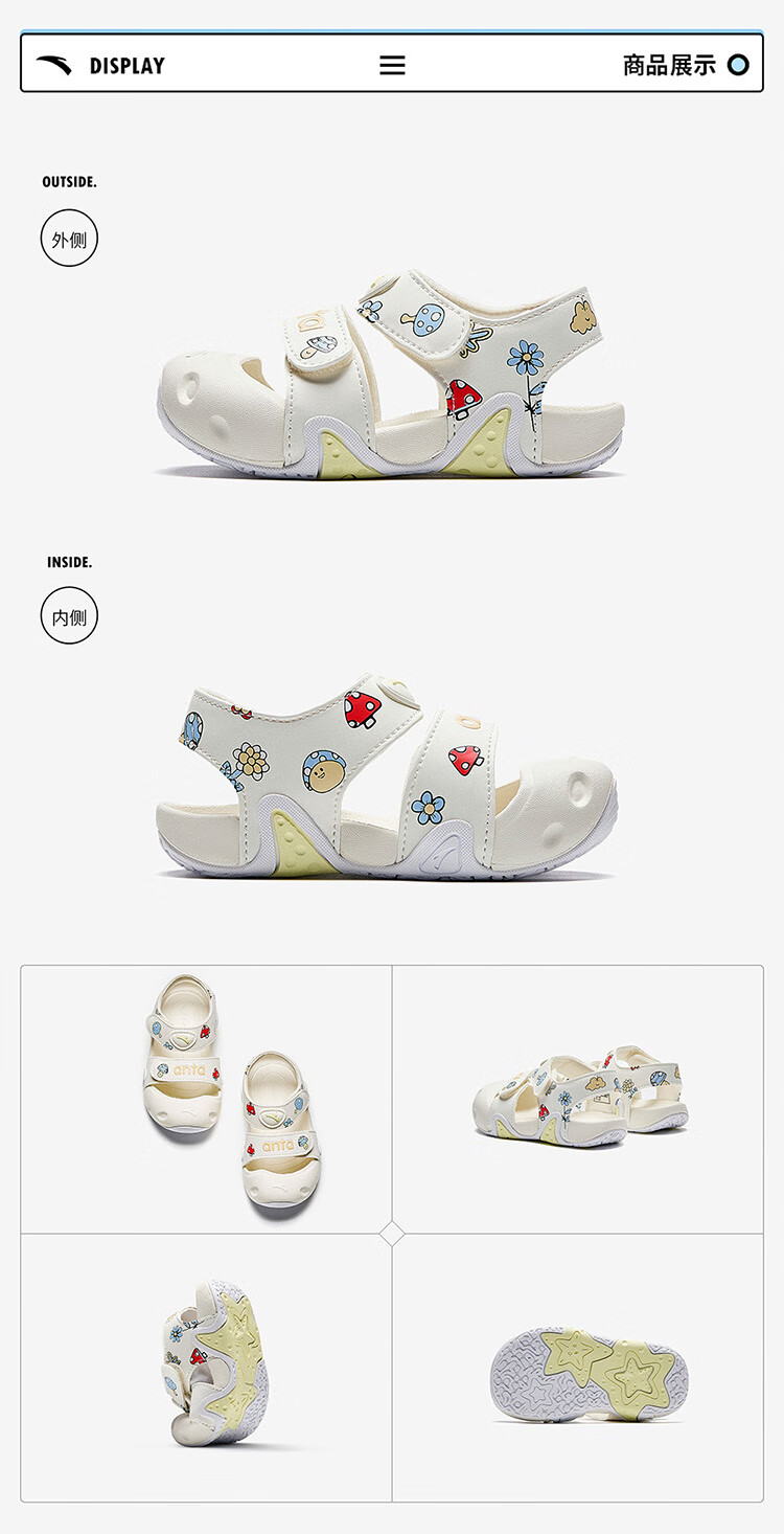 安踏儿童运动鞋女婴童犟弹科技户外系列搭扣低帮海星沙滩鞋322520071