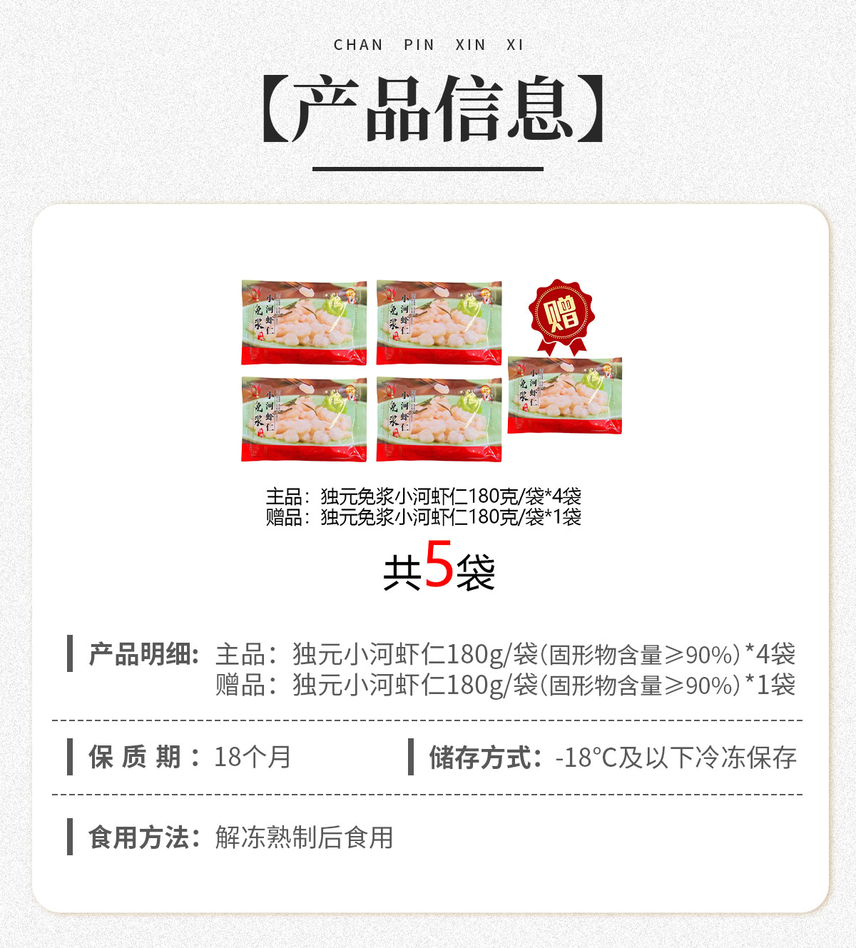 【好吃推荐】限量特惠 独元精选免浆手剥小河虾仁5袋装
