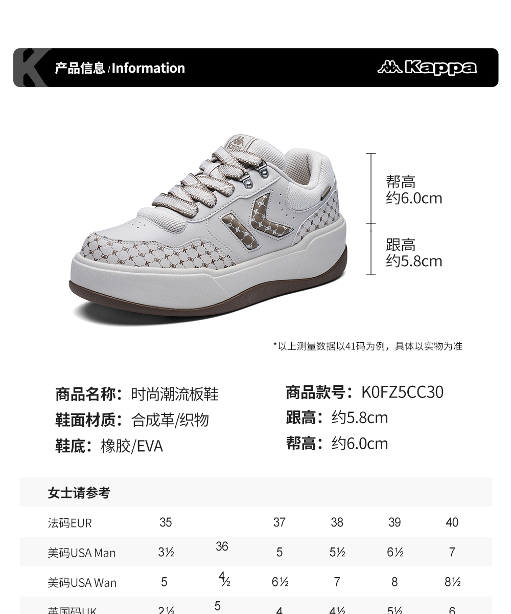 Kappa卡 2025秋季新款 厚底复古运动小白鞋 男女款K0FZ5CC30