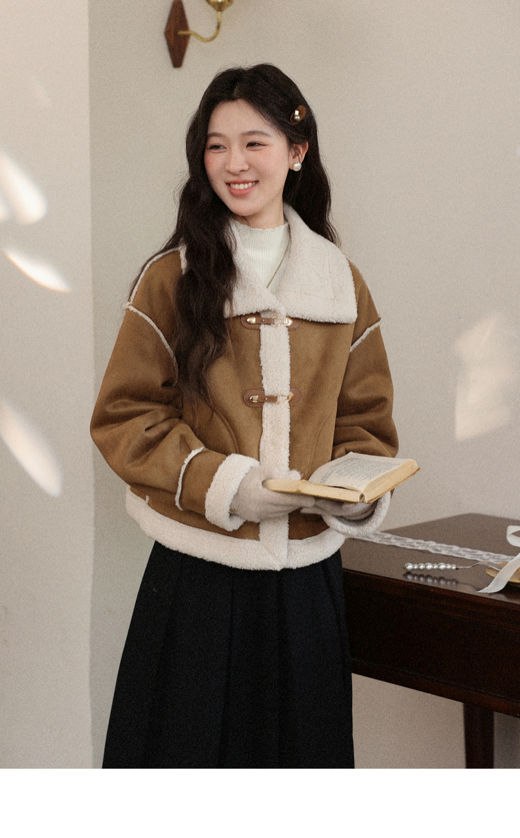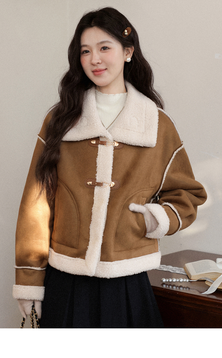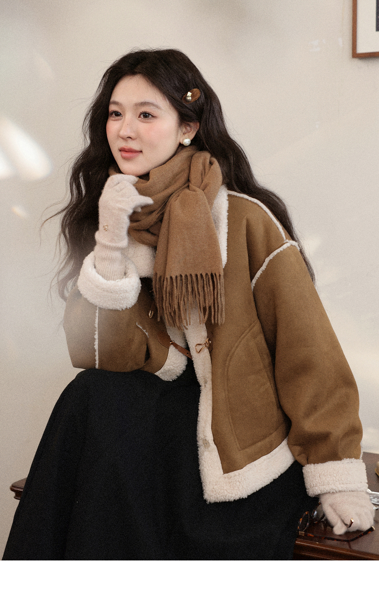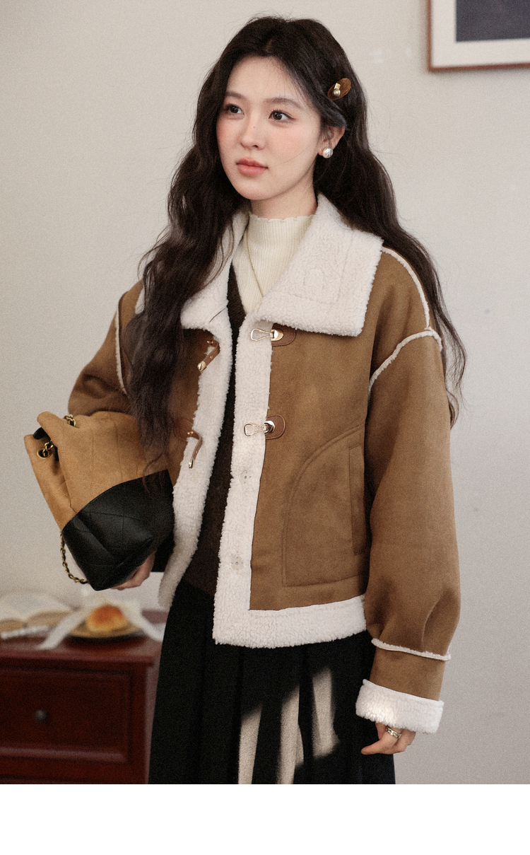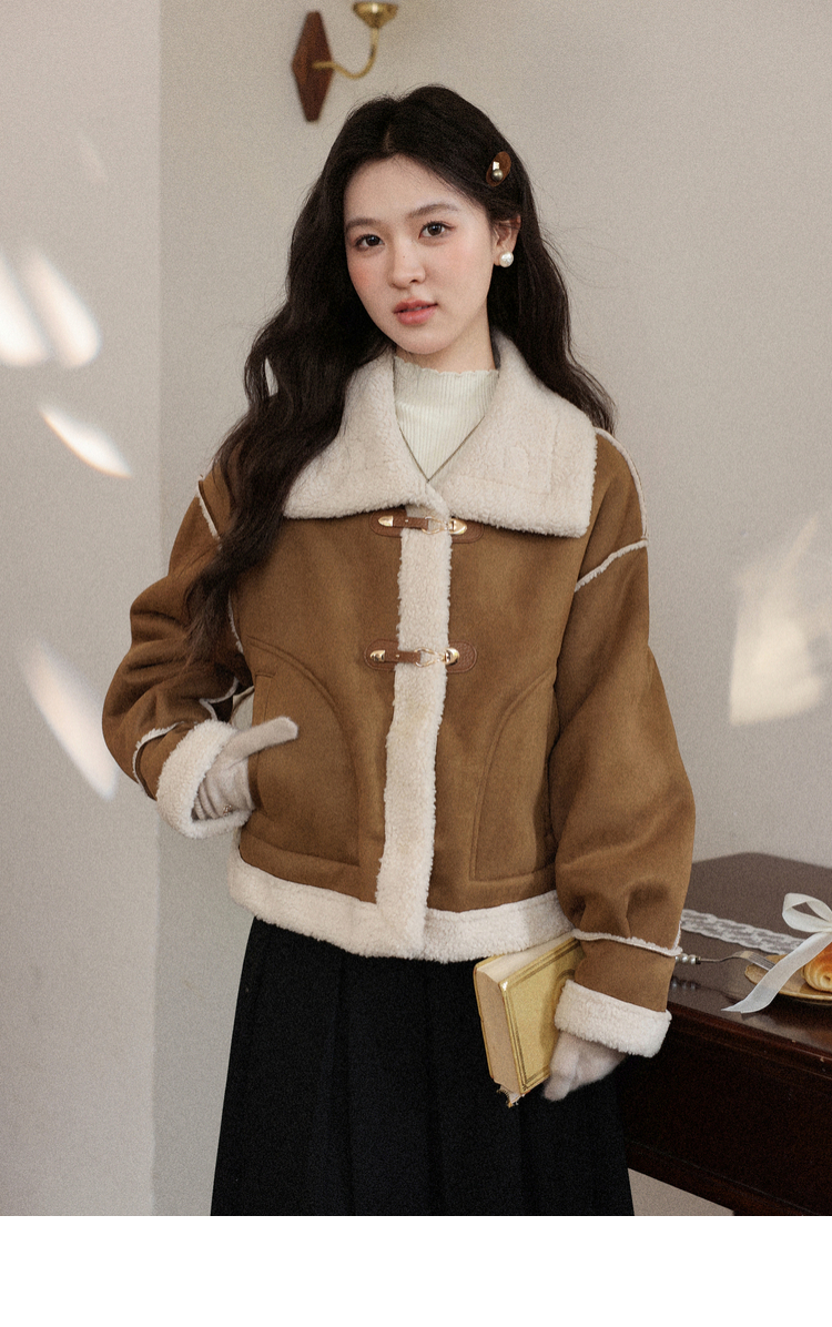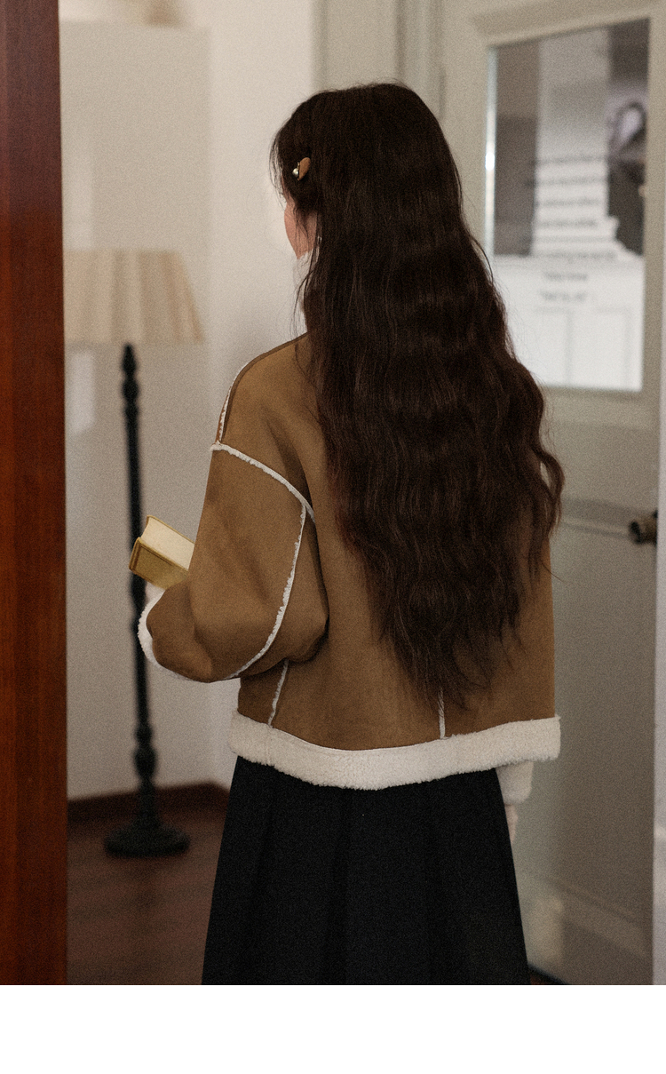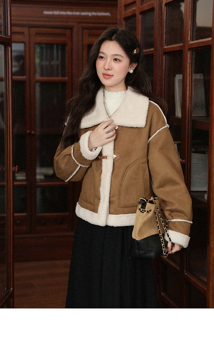 鹿向南「枫糖拿铁」棕色麂皮绒翻领短外套冬季新款复古百搭上衣女