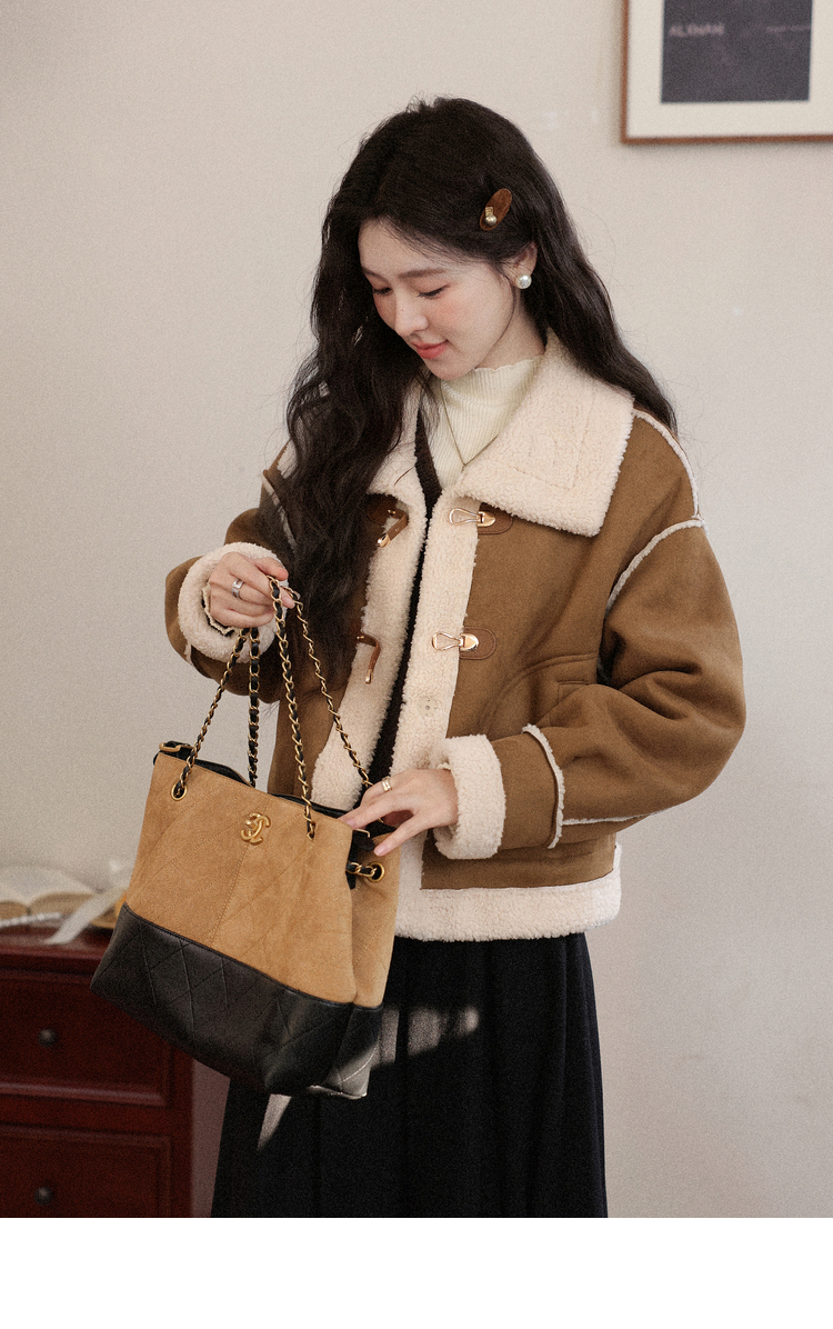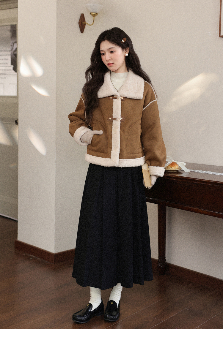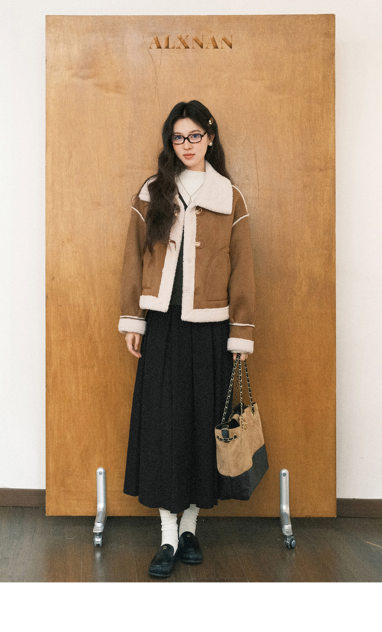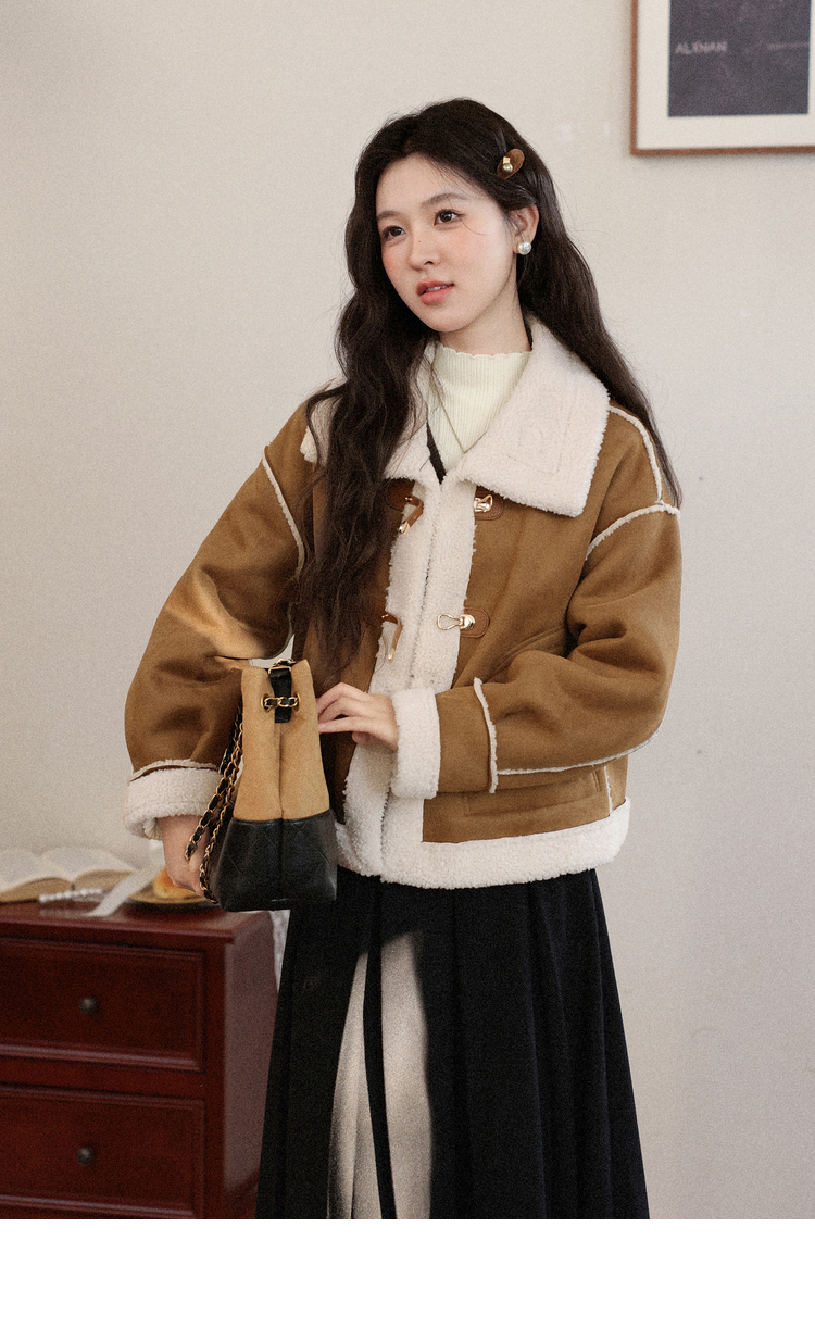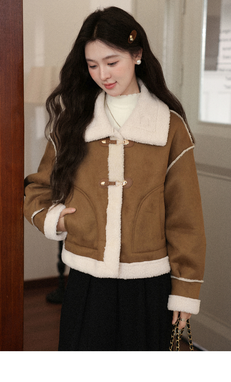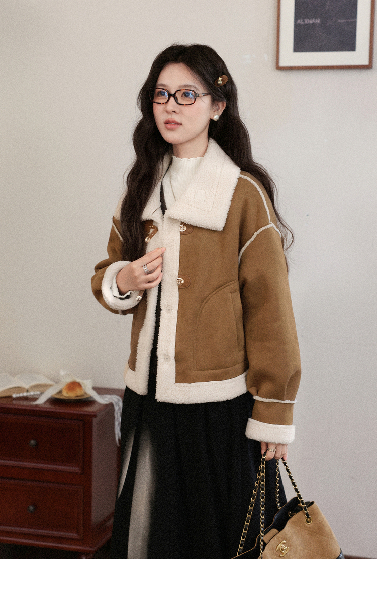 鹿向南「枫糖拿铁」棕色麂皮绒翻领短外套冬季新款复古百搭上衣女