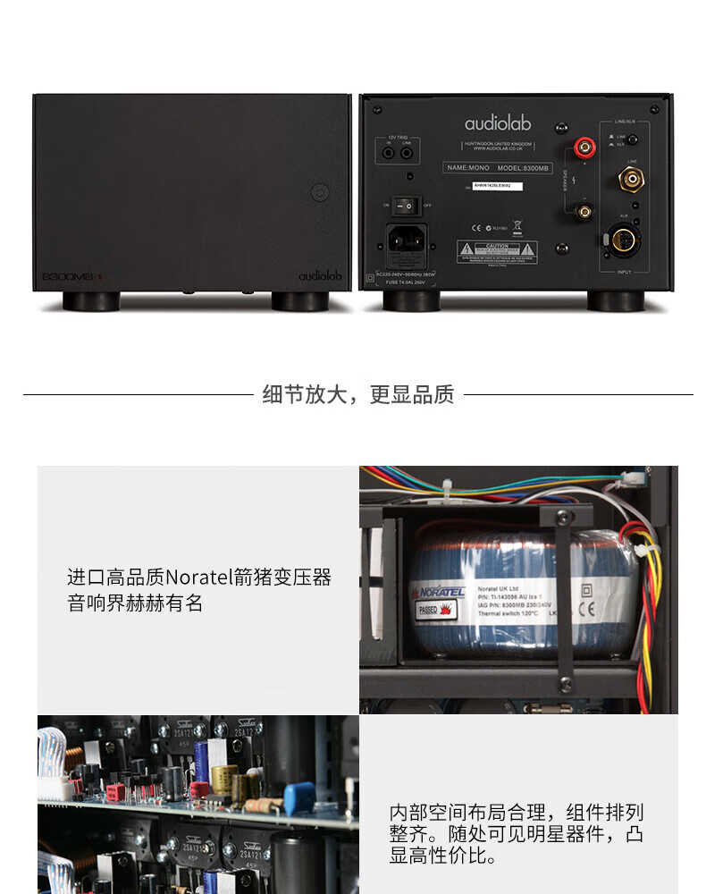 英国 audiolab傲立 8300MB 发烧功放机音响套装 单声道纯后级功放大功率