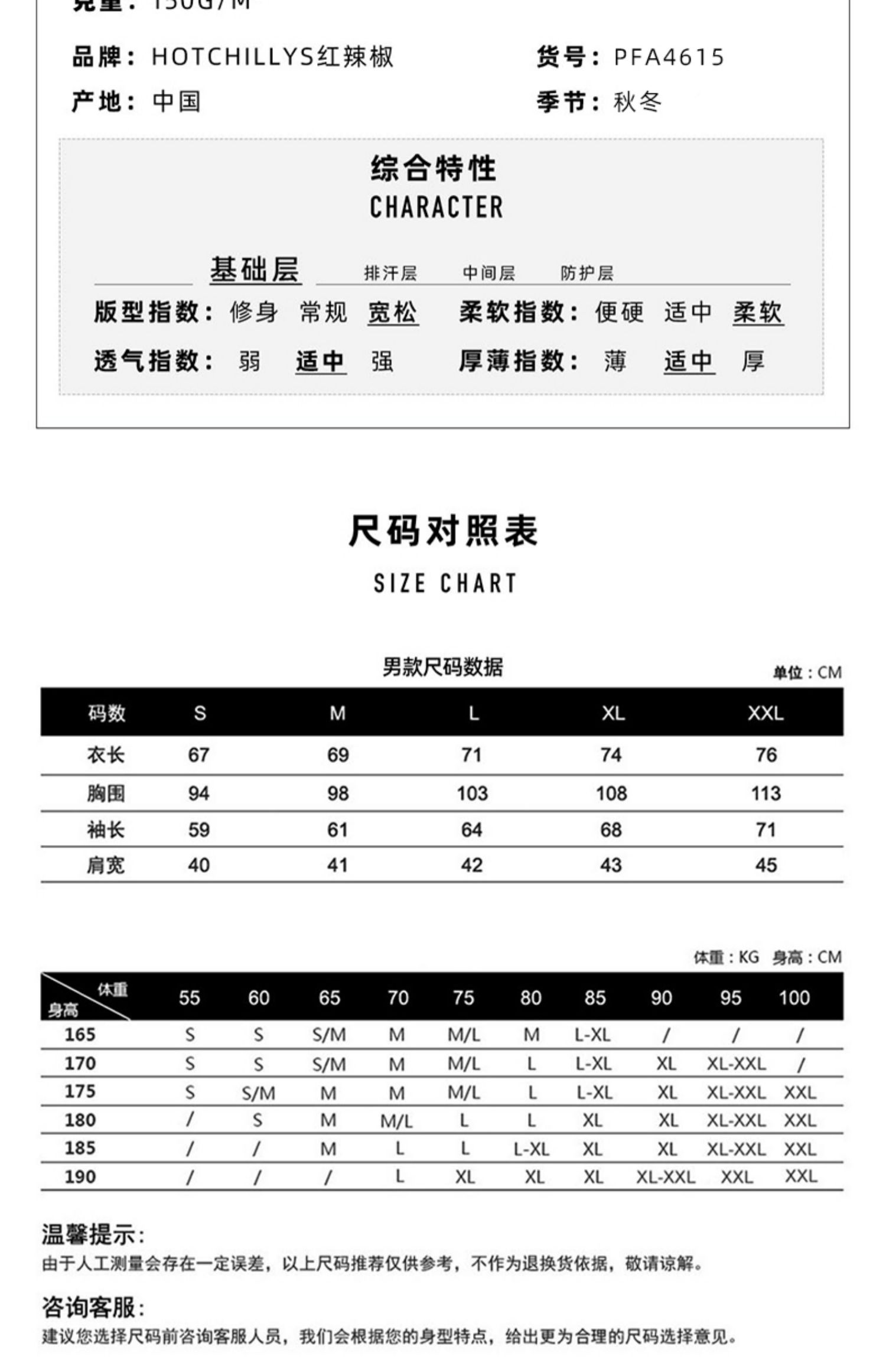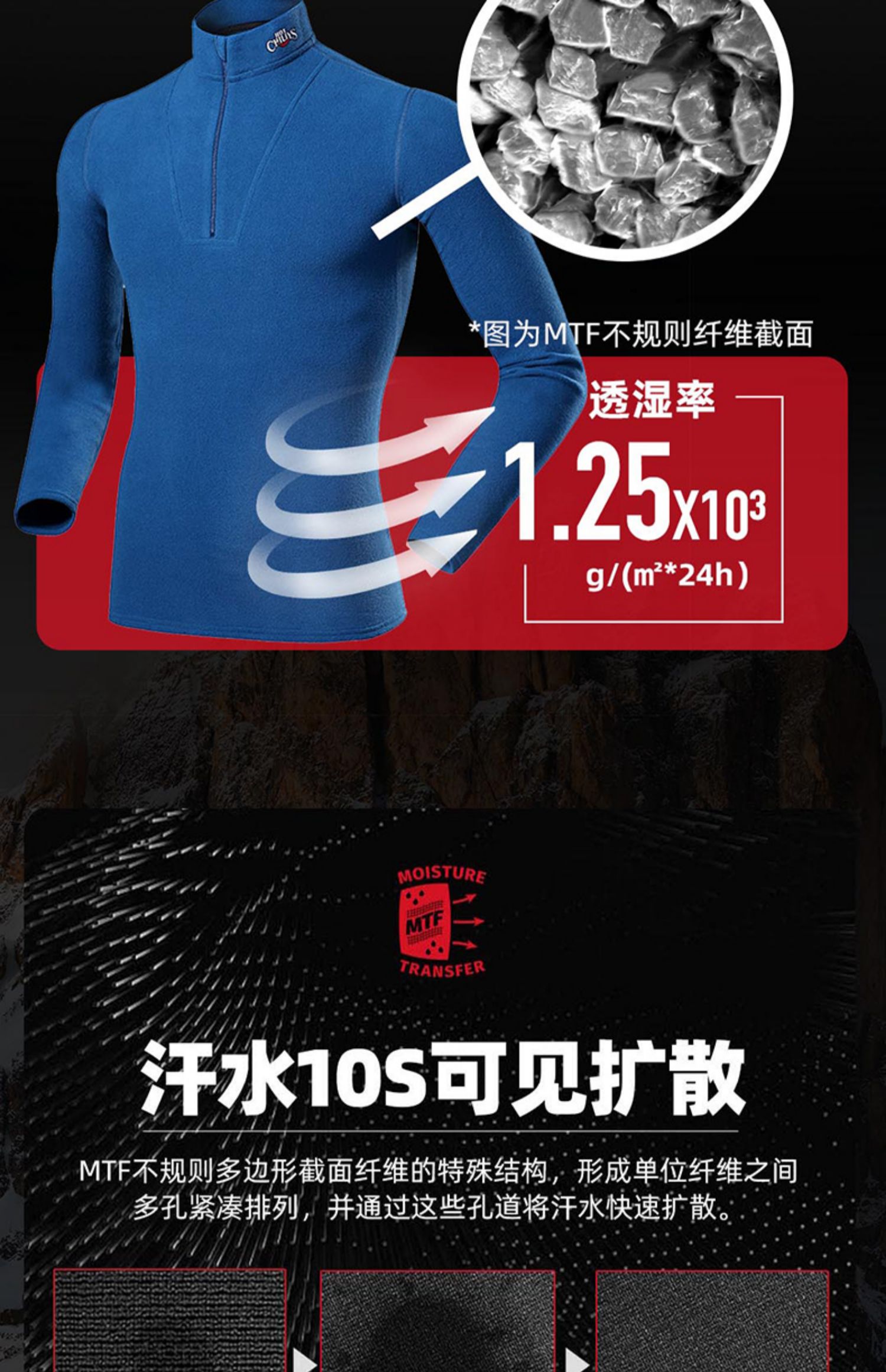 HOTCHILLYS热椒10级男士抓绒拉领保暖内衣快干抑菌透气PFA4615