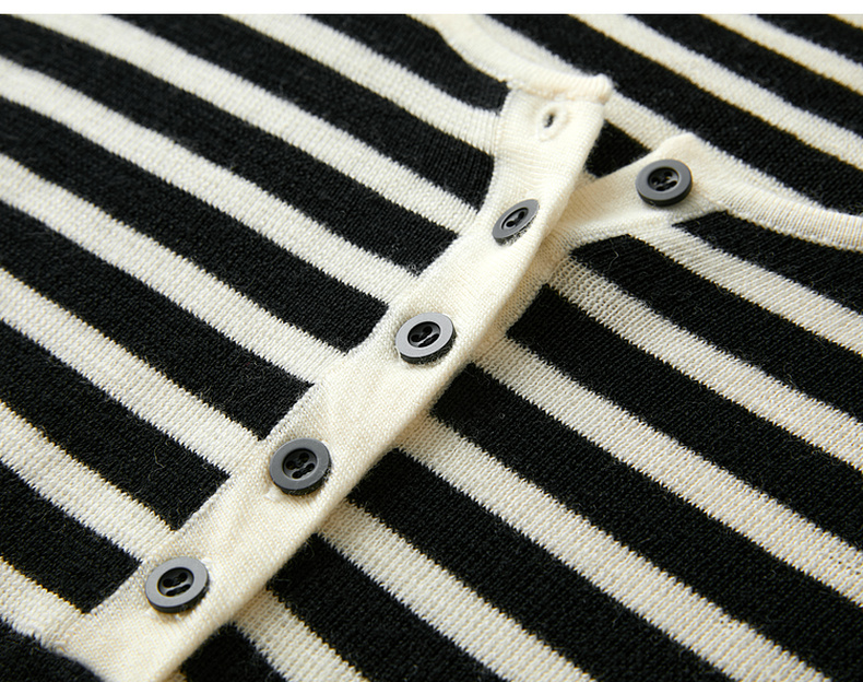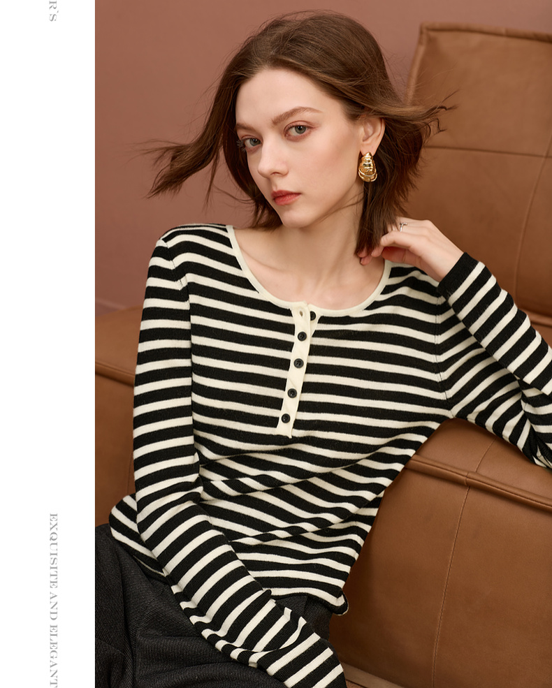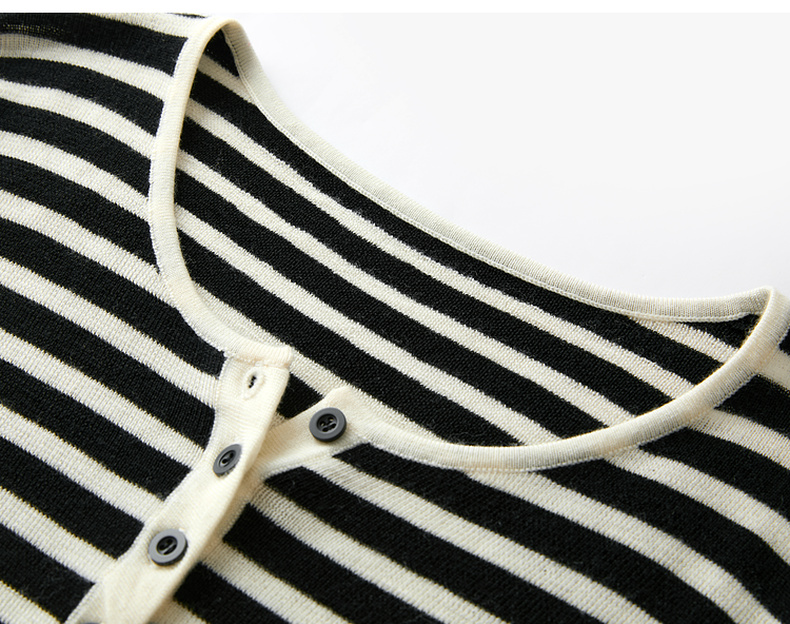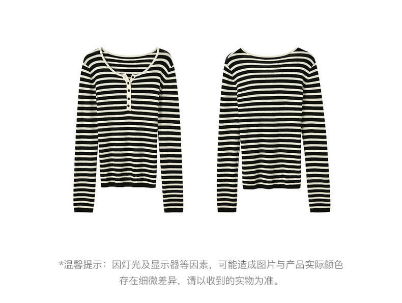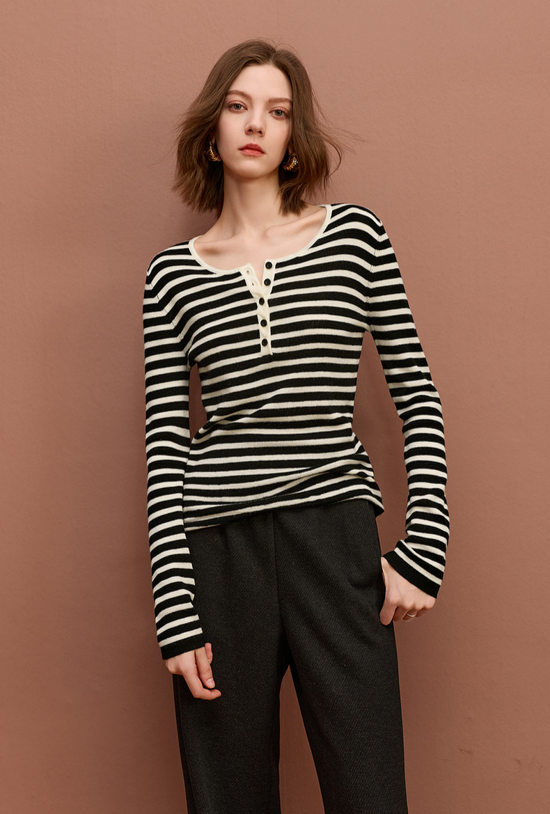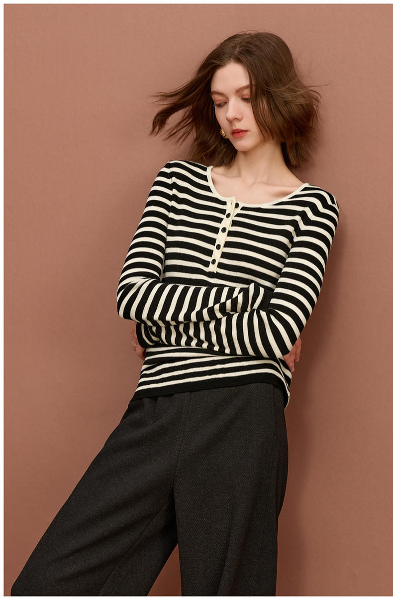 【100绵羊毛】三彩2025冬季新款条纹针织衫长袖套头打底衫毛衫S