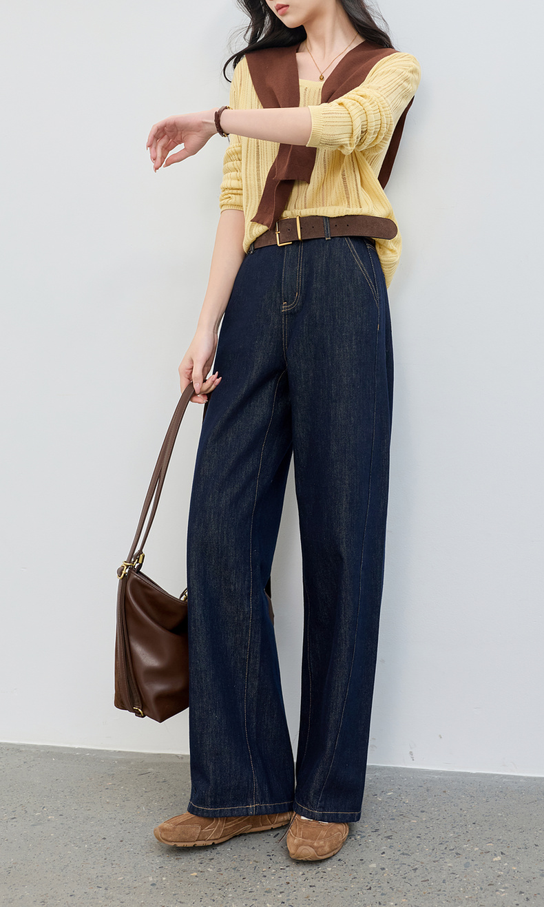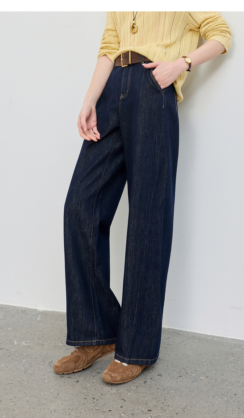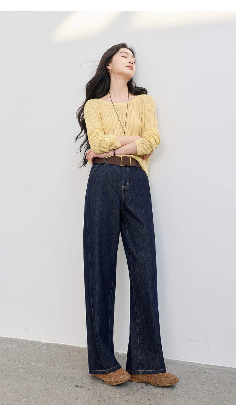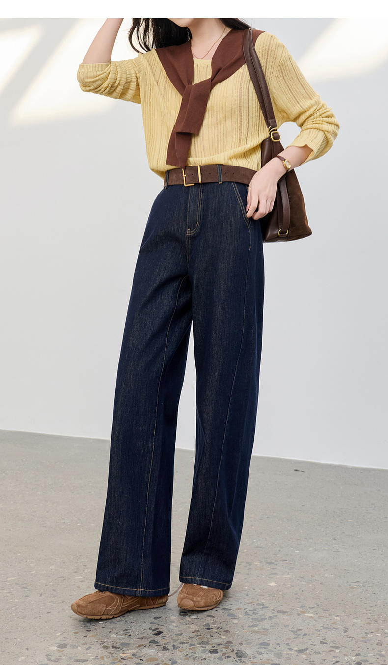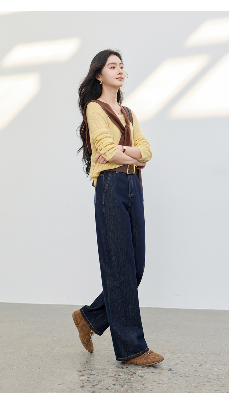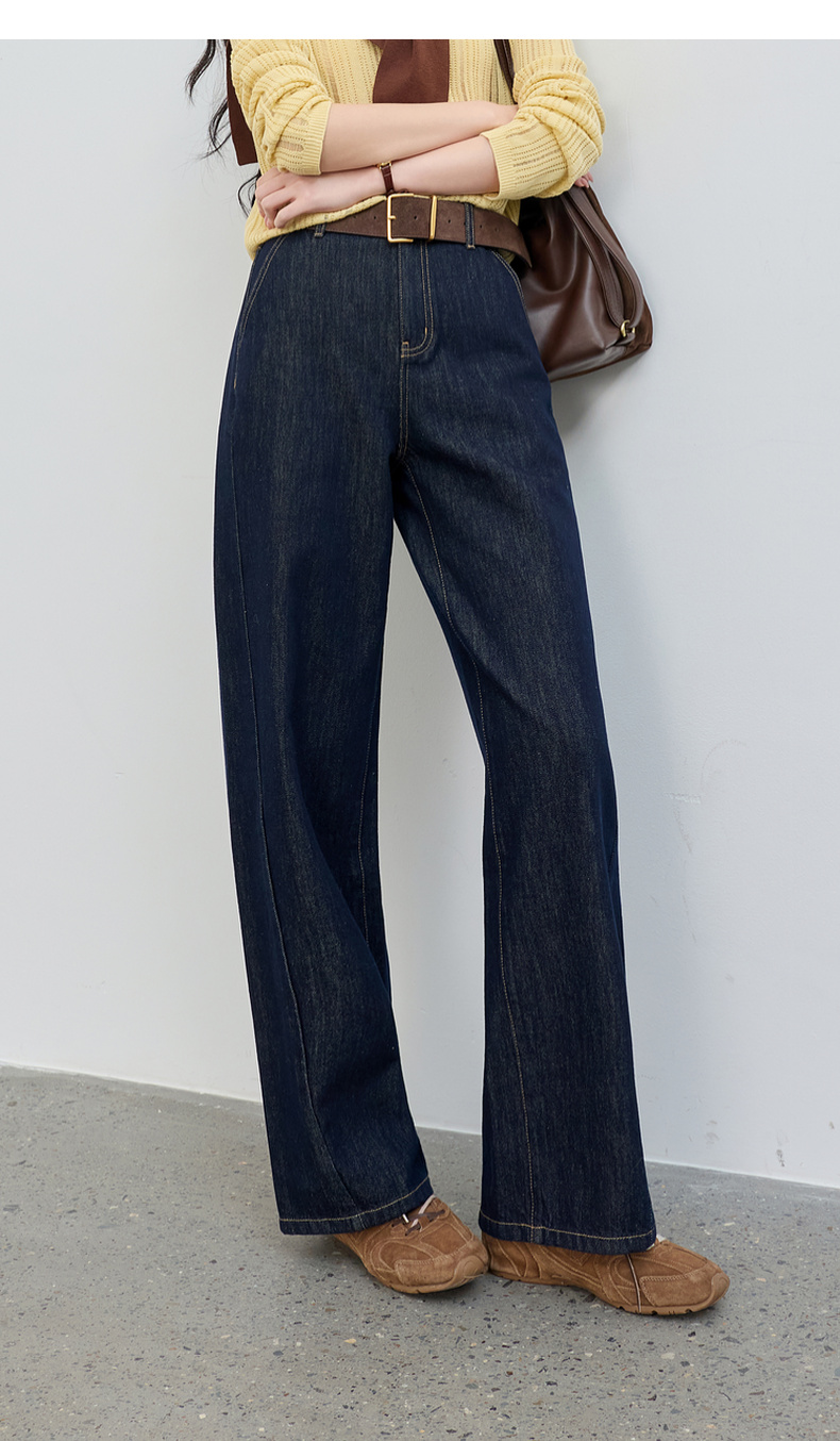 三彩2026春季新款休闲裤收腰牛仔裤长裤直筒裤复古水洗显瘦百搭M