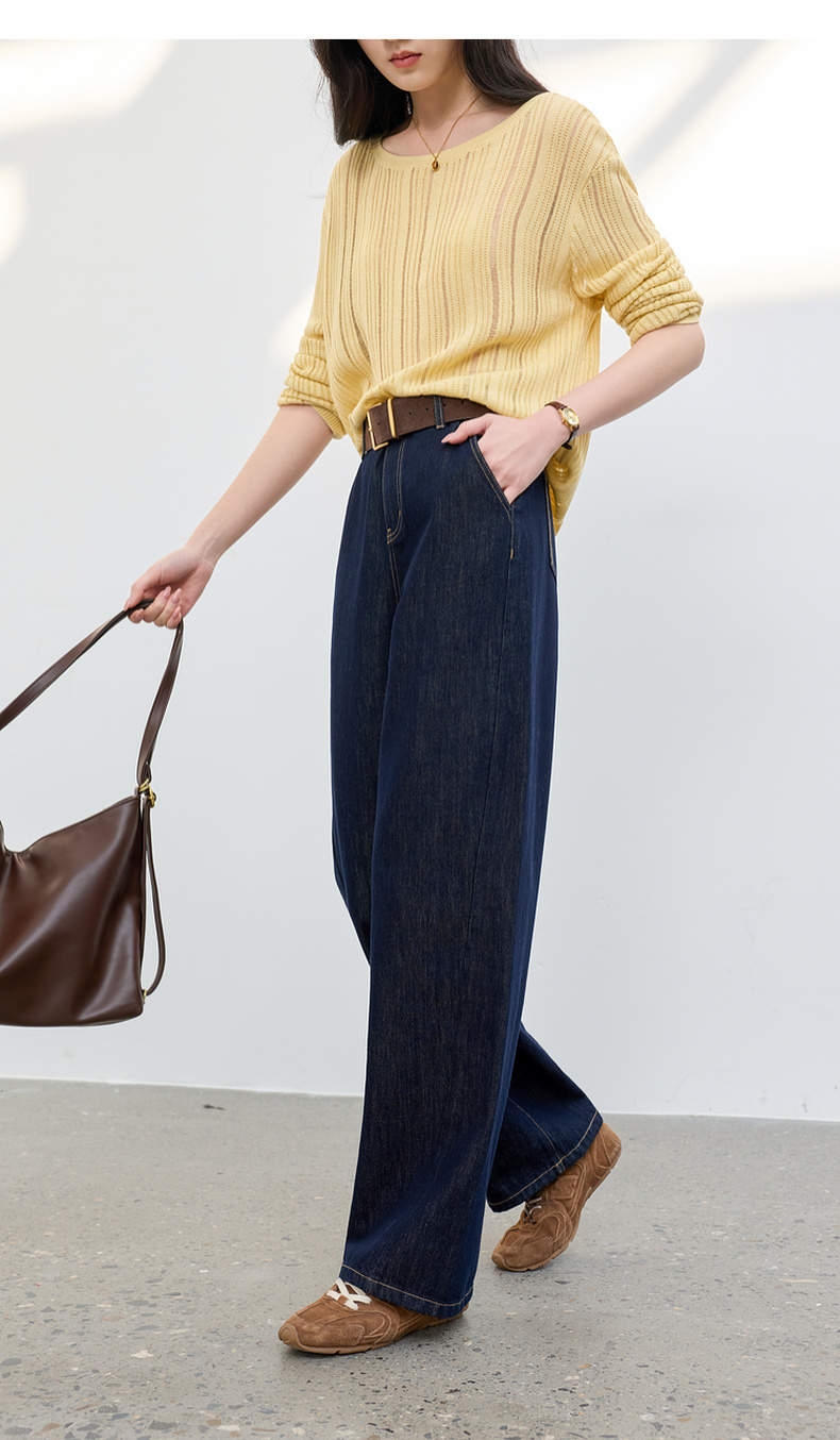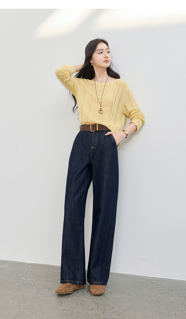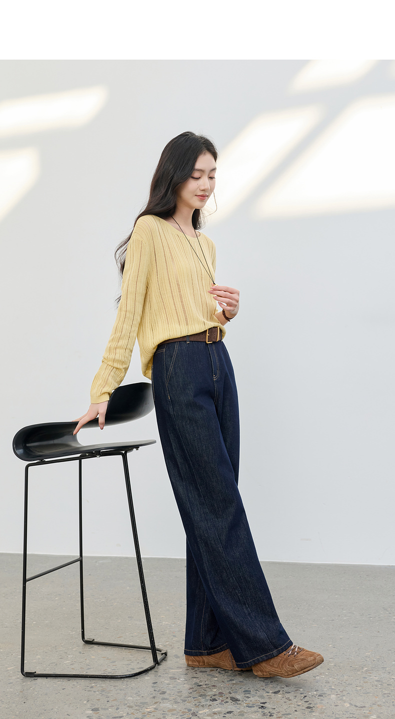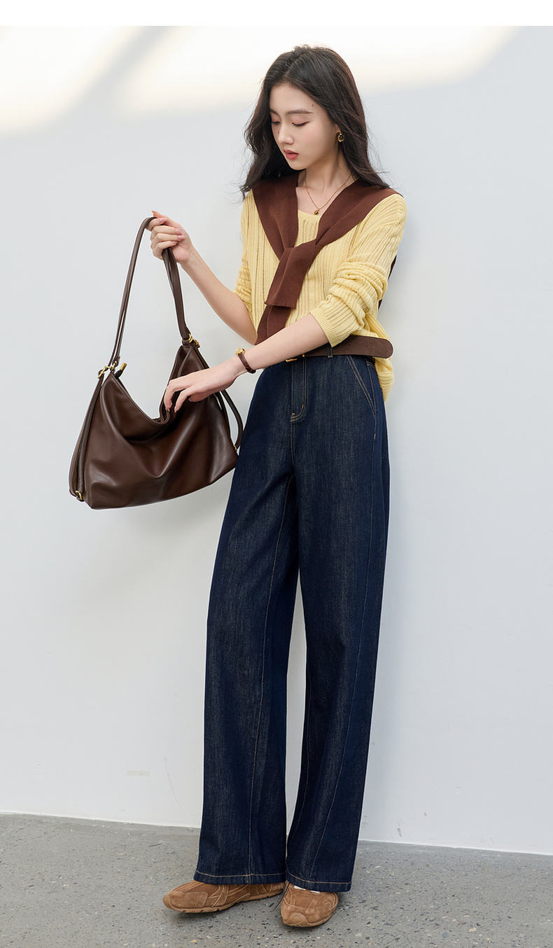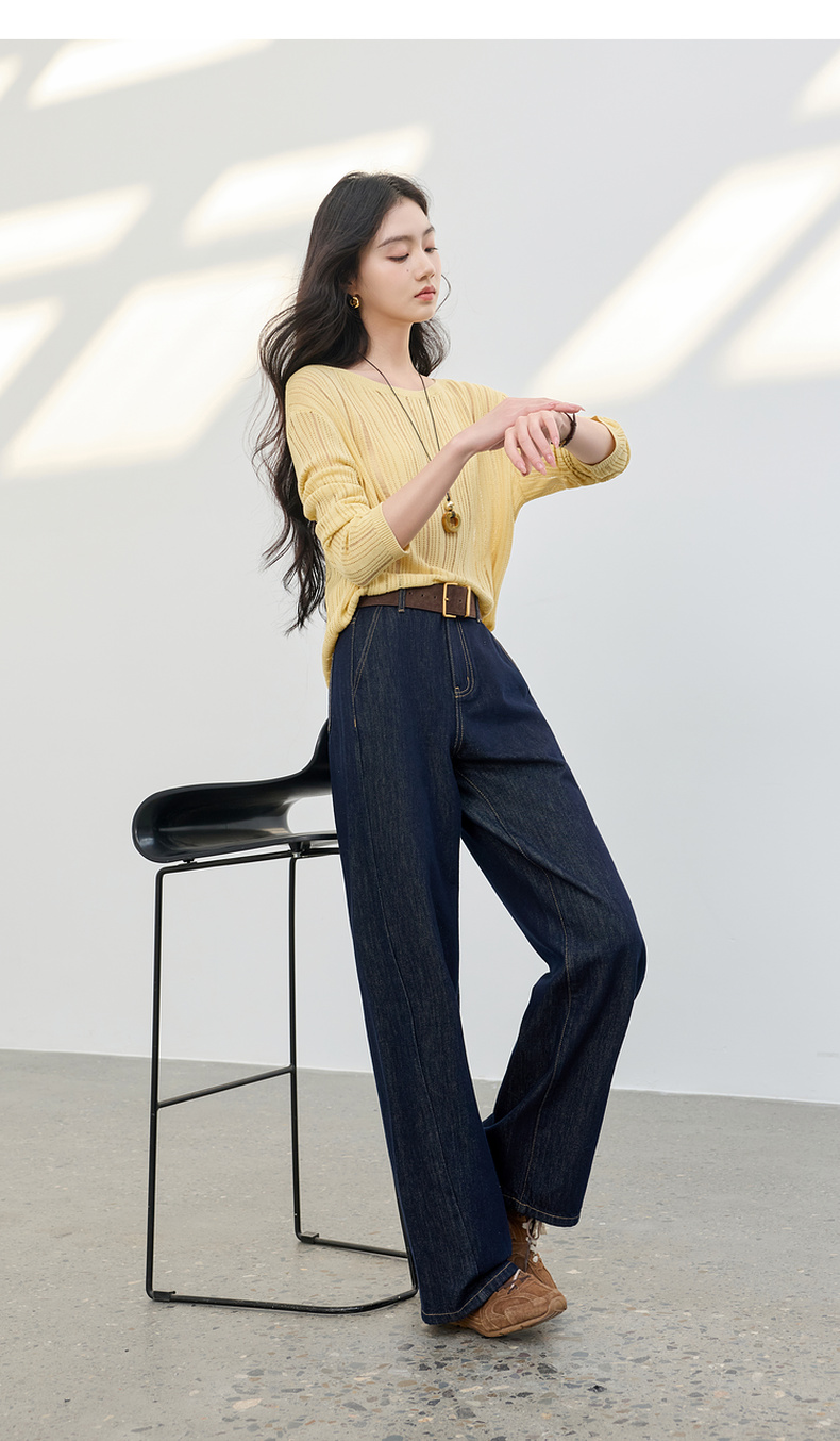 三彩2026春季新款休闲裤收腰牛仔裤长裤直筒裤复古水洗显瘦百搭M