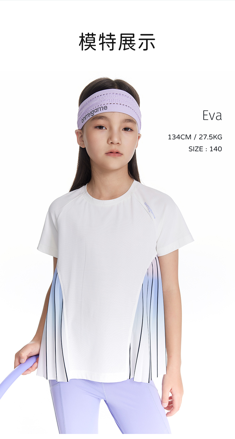 onmygame【轻舞风琴】女童短袖t恤儿童百褶运动上衣夏季2024新款