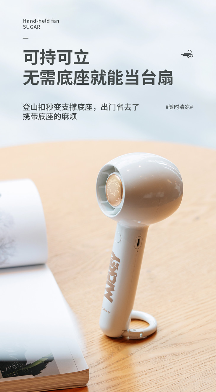 【小巧便携】Dinkein迪士尼联名小糖引擎手持风扇 出行无负担 可挂背包 聚风式风道