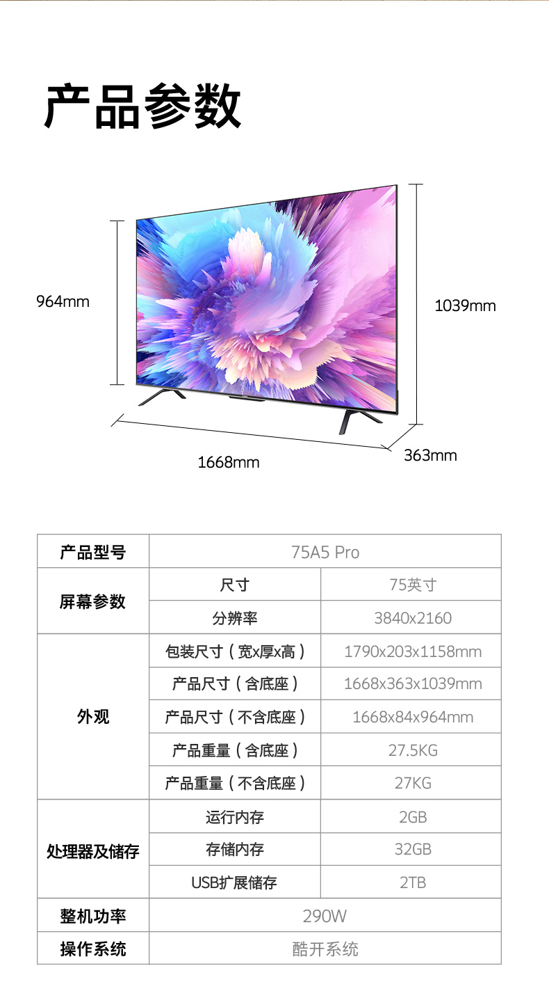 创维75A5 Pro 75英寸语音游戏电视4K高清全面屏护眼智慧液晶 85