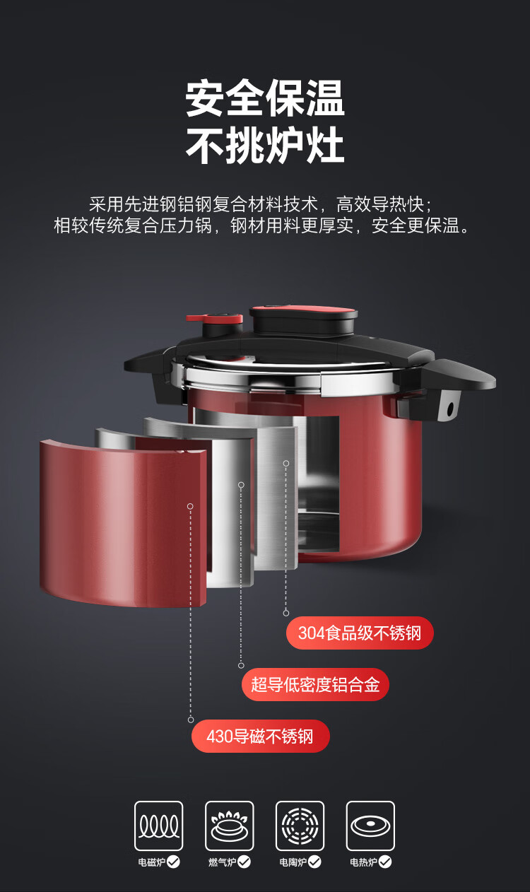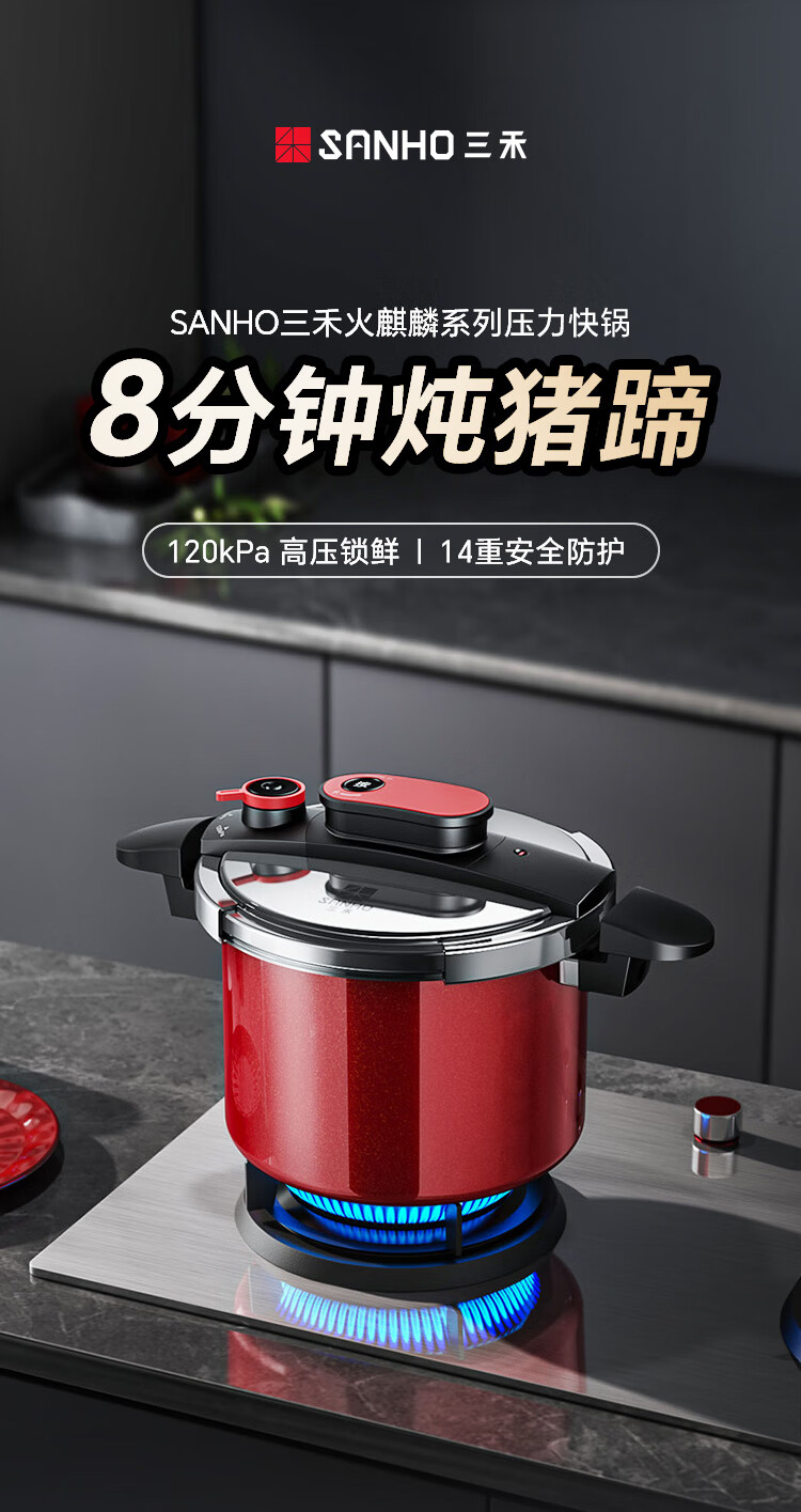 三禾火麒麟不锈钢压力锅- YGB22F1(不锈钢)/(红色)