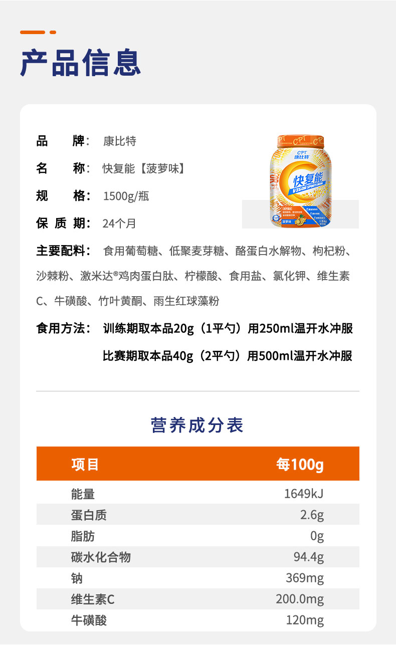 康比特快复能1500g超量恢复缓解酸痛