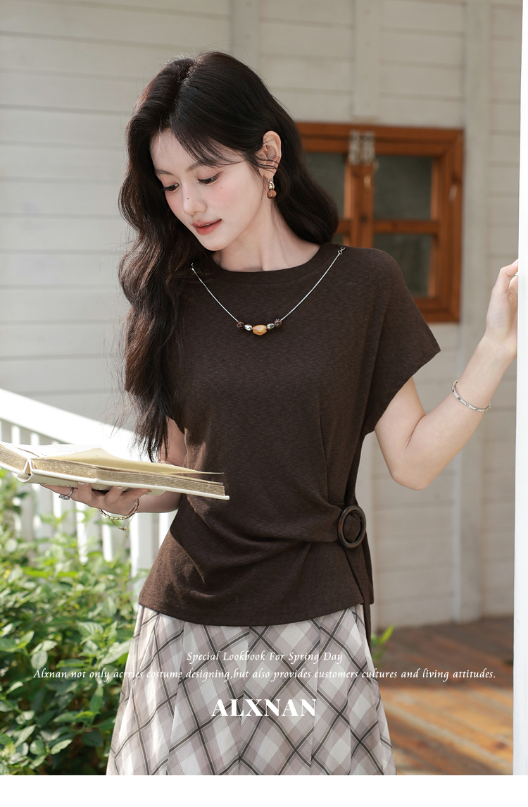 鹿向南【0330/20:00新品前一小时7折限量100件】咖色T恤